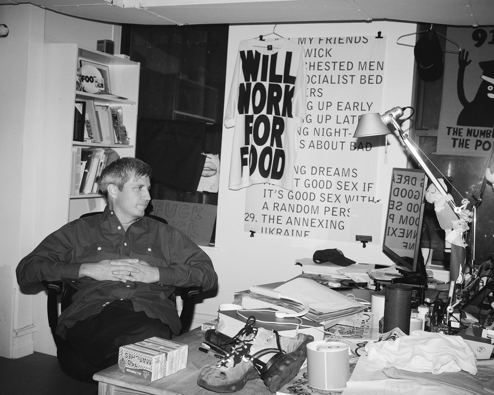 You could potentially describe Richard Turley as an art director or creative director or graphic designer, and he does all of these things, but it still feels a little reductive for the breadth of forms his work has taken over his twenty-year-long career in publishing. It is a useful shorthand, even if it doesn’t get to the heart of the singular way he arranges ideas into words and images on a page. His Chinatown studio is full of words, images, books, cut outs, print-outs, all collaged across every available space on the walls. His colleague, Echo, is busy putting the final touches to a project.