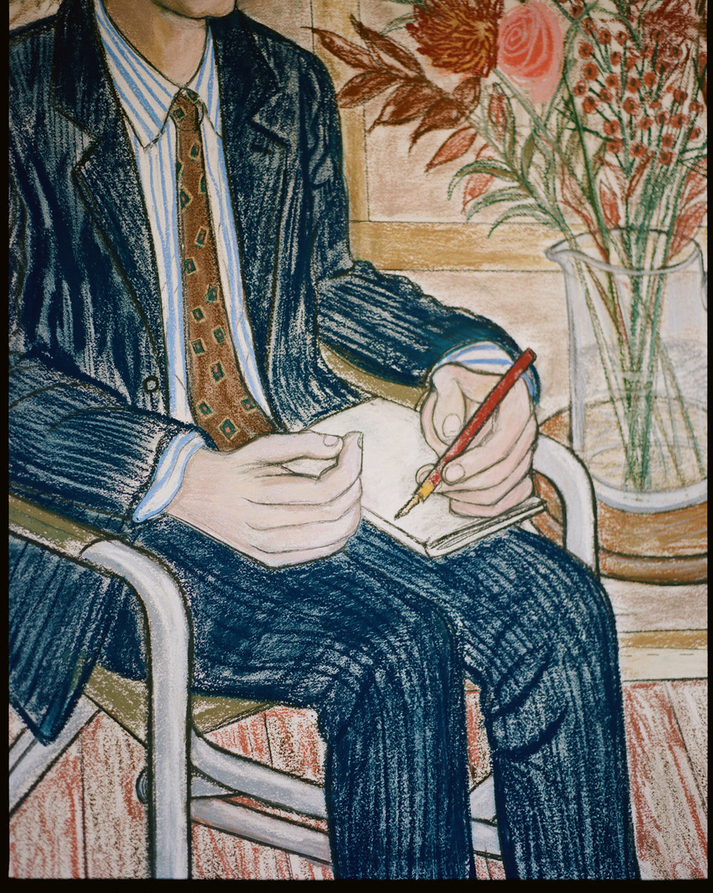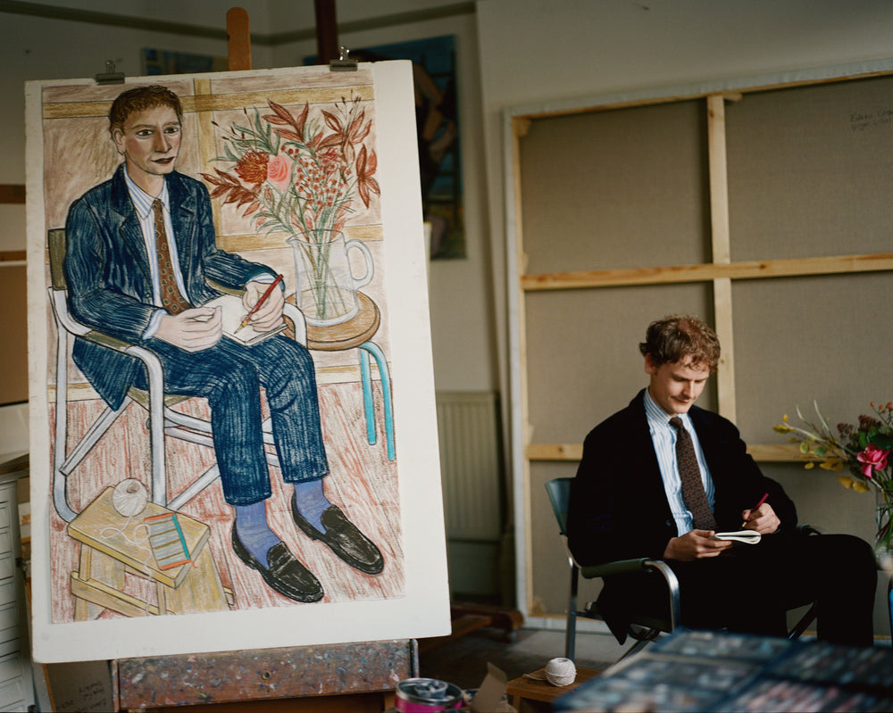 Almost immediately, I realise that the same is true of the real me. Whilst my portrait remains sitting, suited, half-smiling as he chats with Cooper, I will go out into a world where anything could happen. I’ll receive bad news, I’ll embarrass myself, I’ll lose my hair; I might get hit by a bus. My drawing may well live longer than I do. As this existential spiral continues, it occurs to me that I might have been a little quick to believe that this portrait would be an entirely pain-free experience.