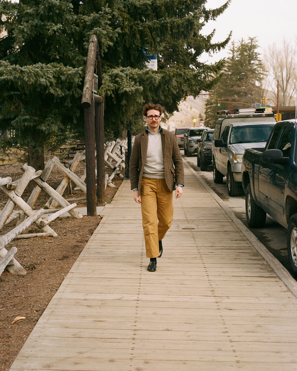 Wrapping up against the elements, highlights include Western shirts in gingham checks and textured cotton moleskin, sturdy carpenter trousers, cozy shearling vests, and a new cut of our signature Games suit that draws inspiration from this corner of the USA, with a throat latch and western-shaped pockets, along with a vintage-style corduroy edition.