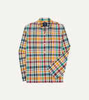 Red, Blue and Green Madras Check Cotton Mandarin Collar Popover Shirt $375.00