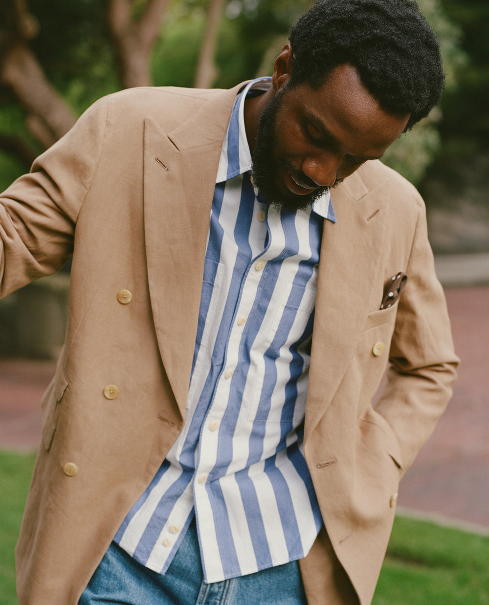 These clothes are designed to live up to such a mythological backdrop, to look good in it, to be practical within it. So a Utility Vest has enough pockets to store whatever you need for a day in the city, while a Hiking Jacket is equally useful for a day trip to Mount Tamalpais or just navigating Lombard Street. Games Suiting this season is led by the drama of a dark Madras check, and a black seersucker, both perfect for warm city evenings that require a bit more formality.