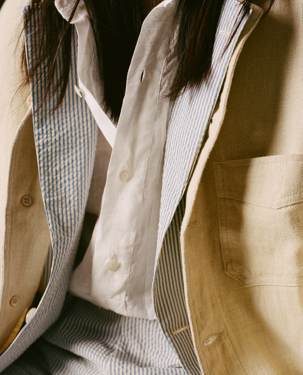 Featuring a collection of sartorial-leaning single and double-breasted classics, highlights include plenty of premium Irish linen, including some softer palettes of ecru and beige—ideal for Tuscan weddings or mixed and matched during hotter days in the city—alongside our signature relaxed Games tailoring in antique linen, including a summery black tie-appropriate MKV iteration.