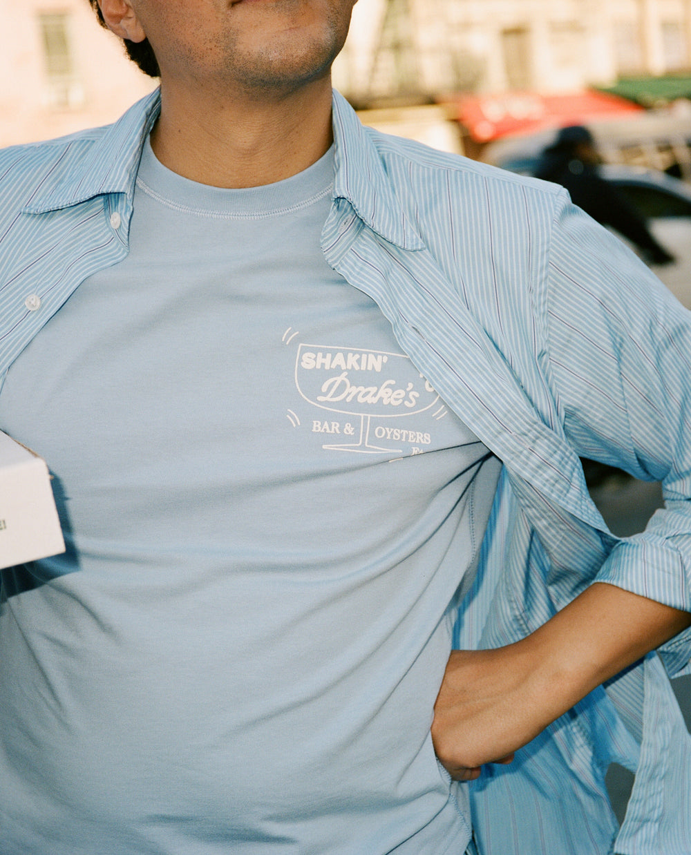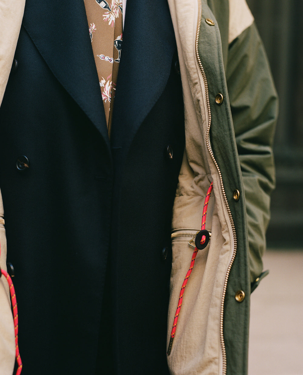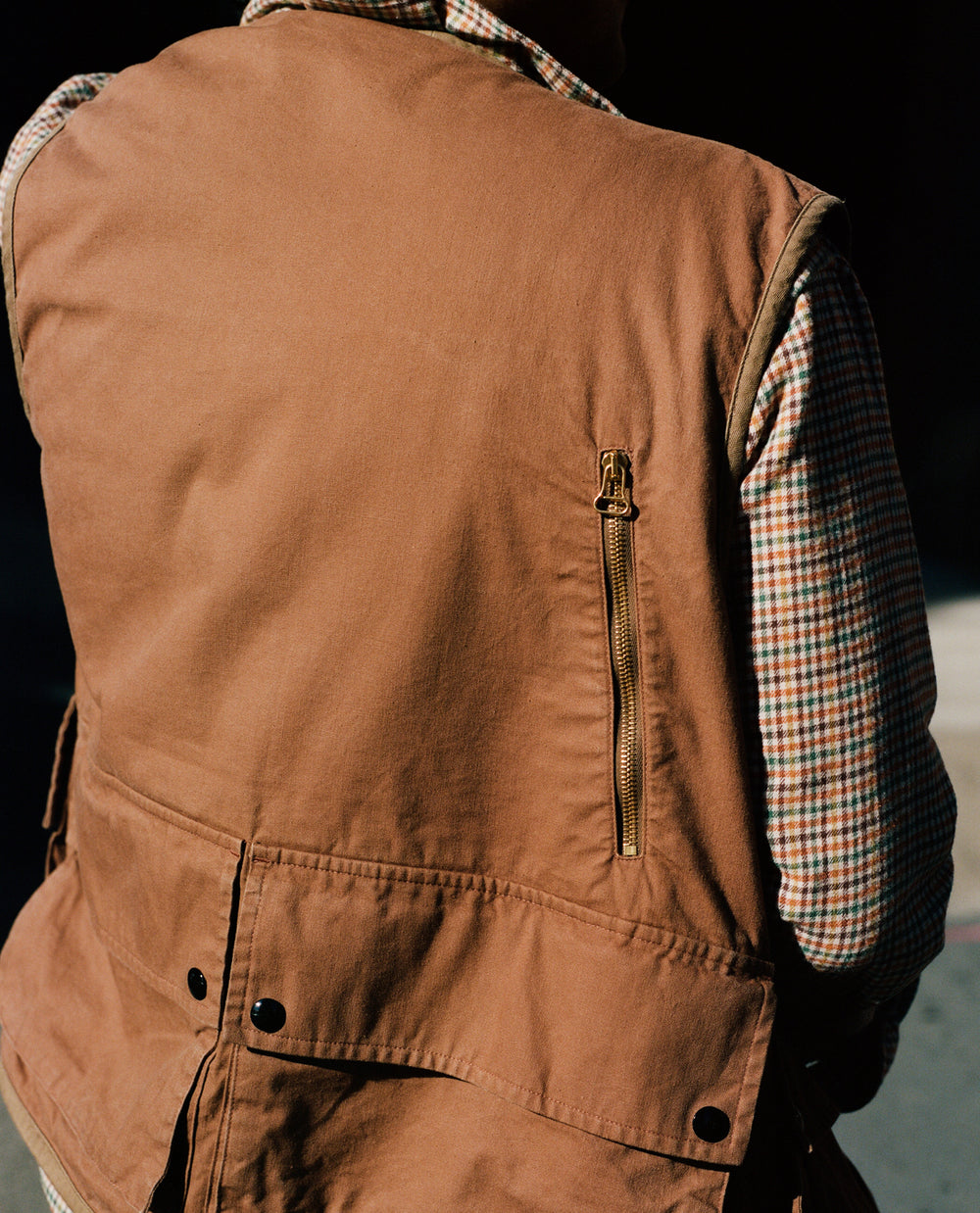 It’s this culinary and cultural energy and history that’s inspired this collection. From the gingham table cloths of old school red sauce restaurants to huge diner burgers and the smooth luxury of martinis and oysters. A smock jacket in cord celebrates Tribeca’s artistic heritage, while the white collar and cuffs of red-striped western shirt are ready for a day analysing the markets and making deals, especially when paired with a double breasted fresco suit made in our factory in Veneto. Elsewhere, an olive and ecru windbreaker and a safari vest perfectly prepare for whatever the city throws at you.