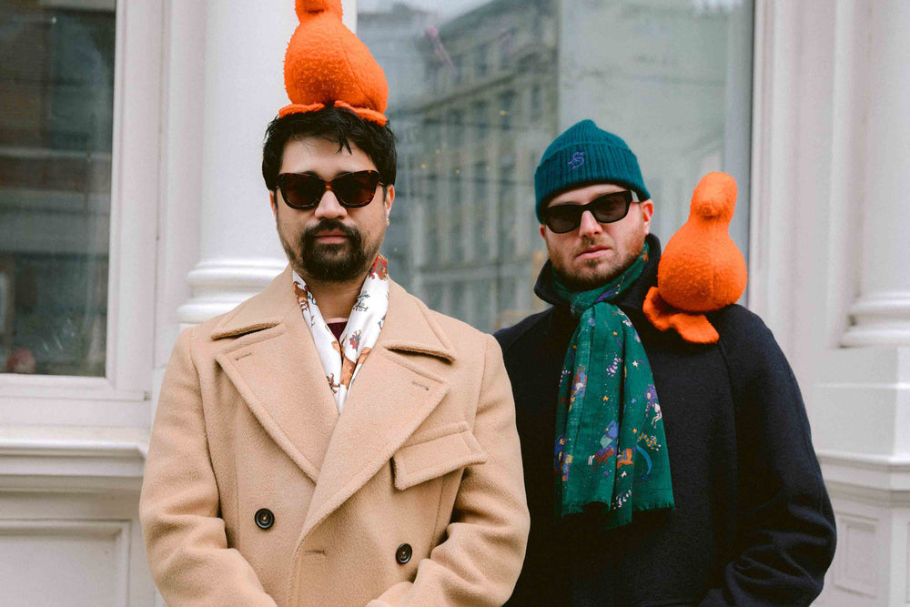 James Harris and Lawrence Schlossman have a way of getting inside your head. Listen to a few episodes of their hit podcast, Throwing Fits, a frenetic riff on menswear, pop culture and the wider internet and fashion zeitgeist, and you might find yourself standing alone in the kitchen mouthing signature quips like 'Fit Check', 'Post Sneaker World', 'Jawnz Enthusiasts' and 'Close Personal Celebrity Friend' like a lunatic. Mixing bravado, irony, inside jokes and genuine knowledge and appreciation for quality clothes and the people who make them, the two thirty-something, Brooklyn-based friends have become the savvy and self-referential court jesters of the esoteric world of New York men's fashion and lifestyle. They've interviewed Jonah Hill, been called "The Shock Jocks of Menswear" by The New Yorker and launched their own hugely popular rage of merch and gear. "We talk shit for a living," says Schlossman, "but James and I have been in fashion and media for a combined 20 years now. The show, at this stage, has been galvanised into its own brand and community. When we were sharing one microphone in a tiny room, we never imagined that it would go this far."