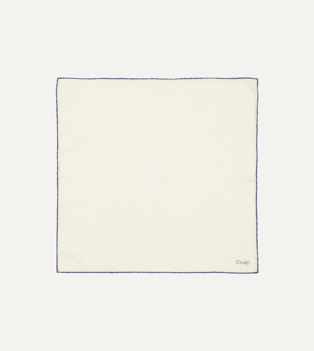 Ivory and Blue Shoestring Border Silk Pocket Square