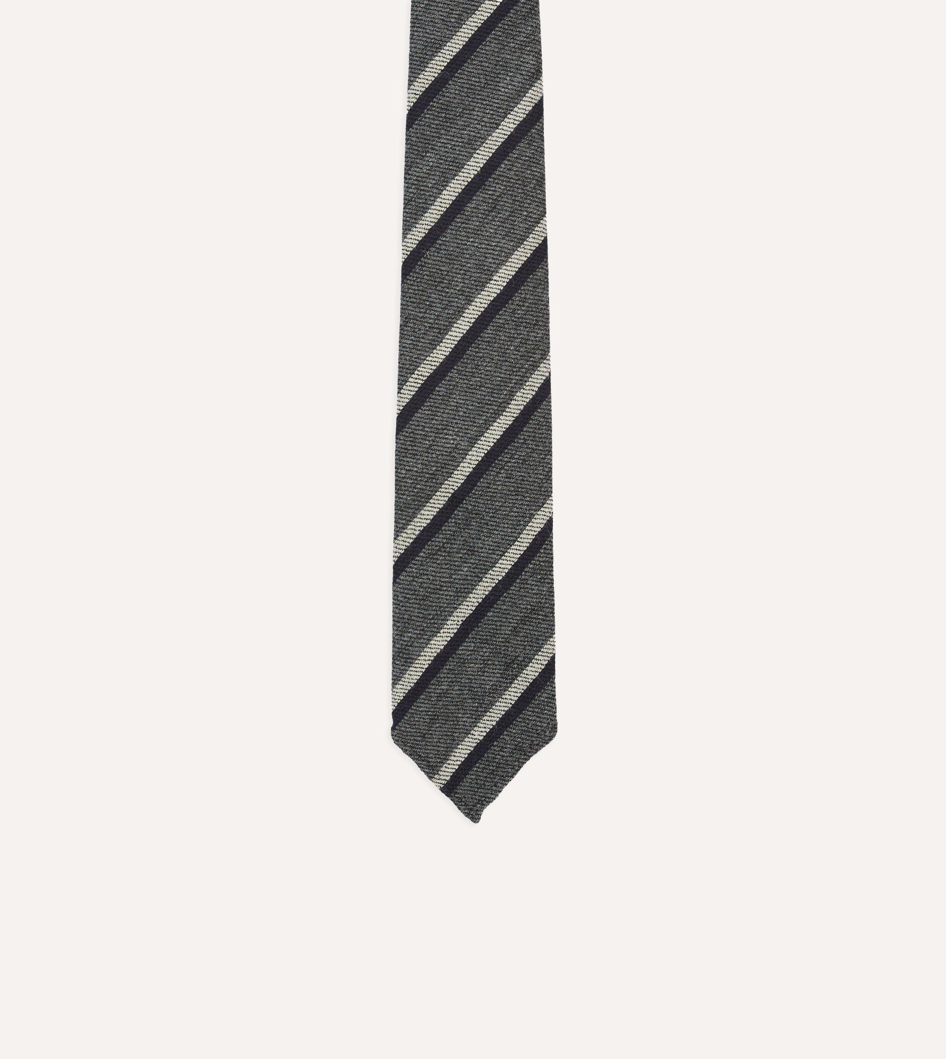 Grey Double Stripe Hand Rolled Wool Tie