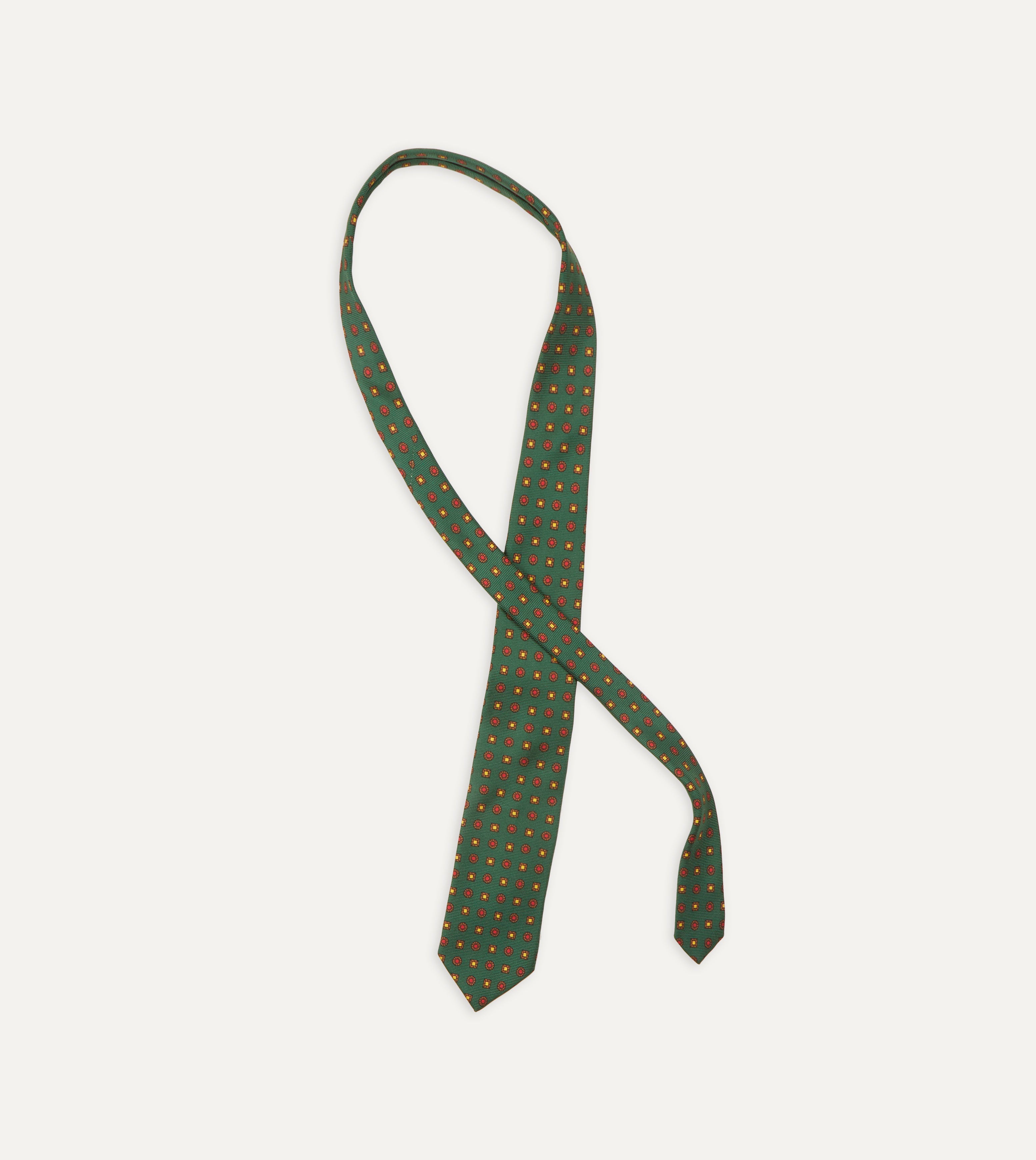 Green and Red Geometric Medallion Print Madder Twill Silk Tie