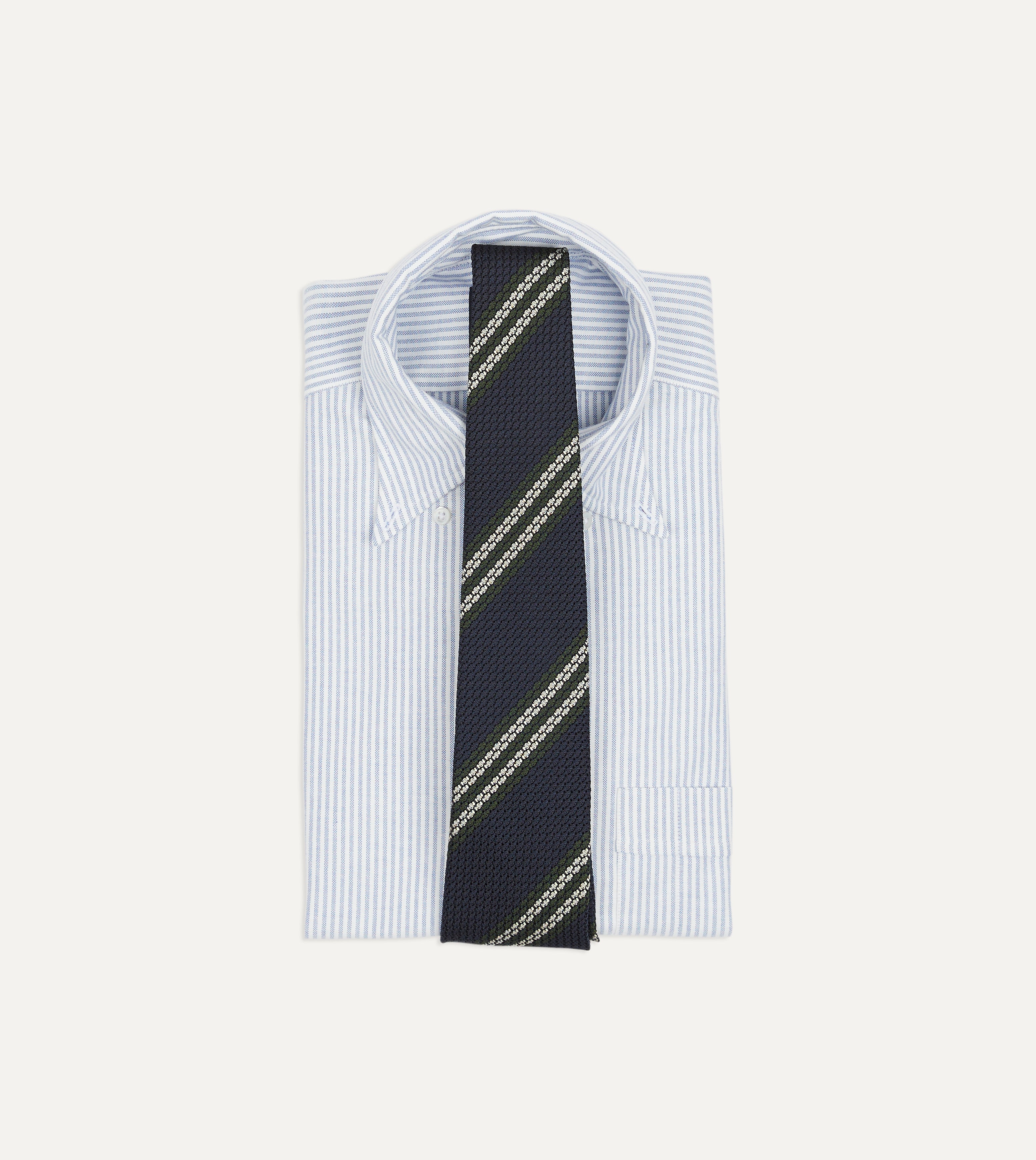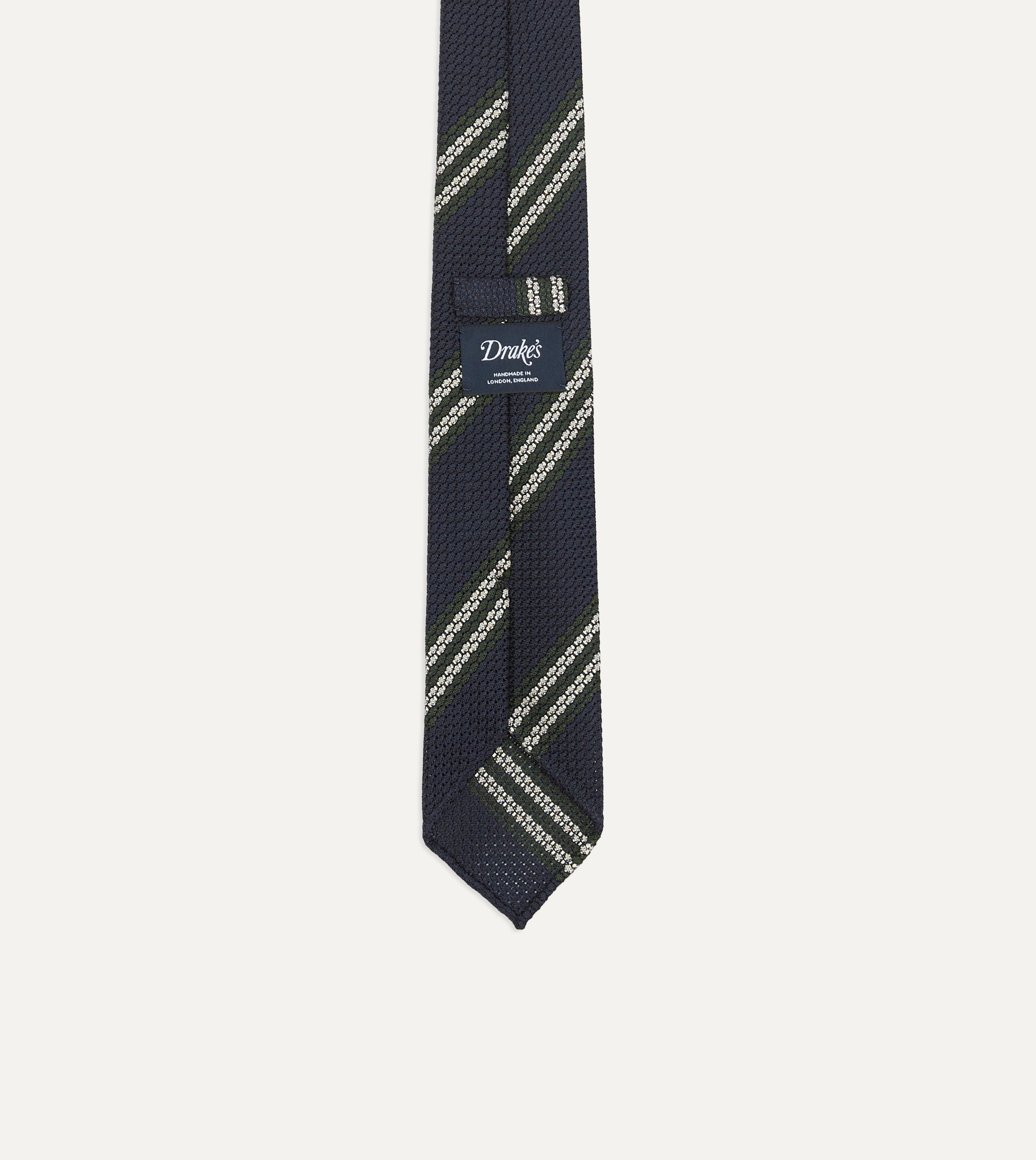 Navy, Green and White Double Stripe Silk Grenadine Tie