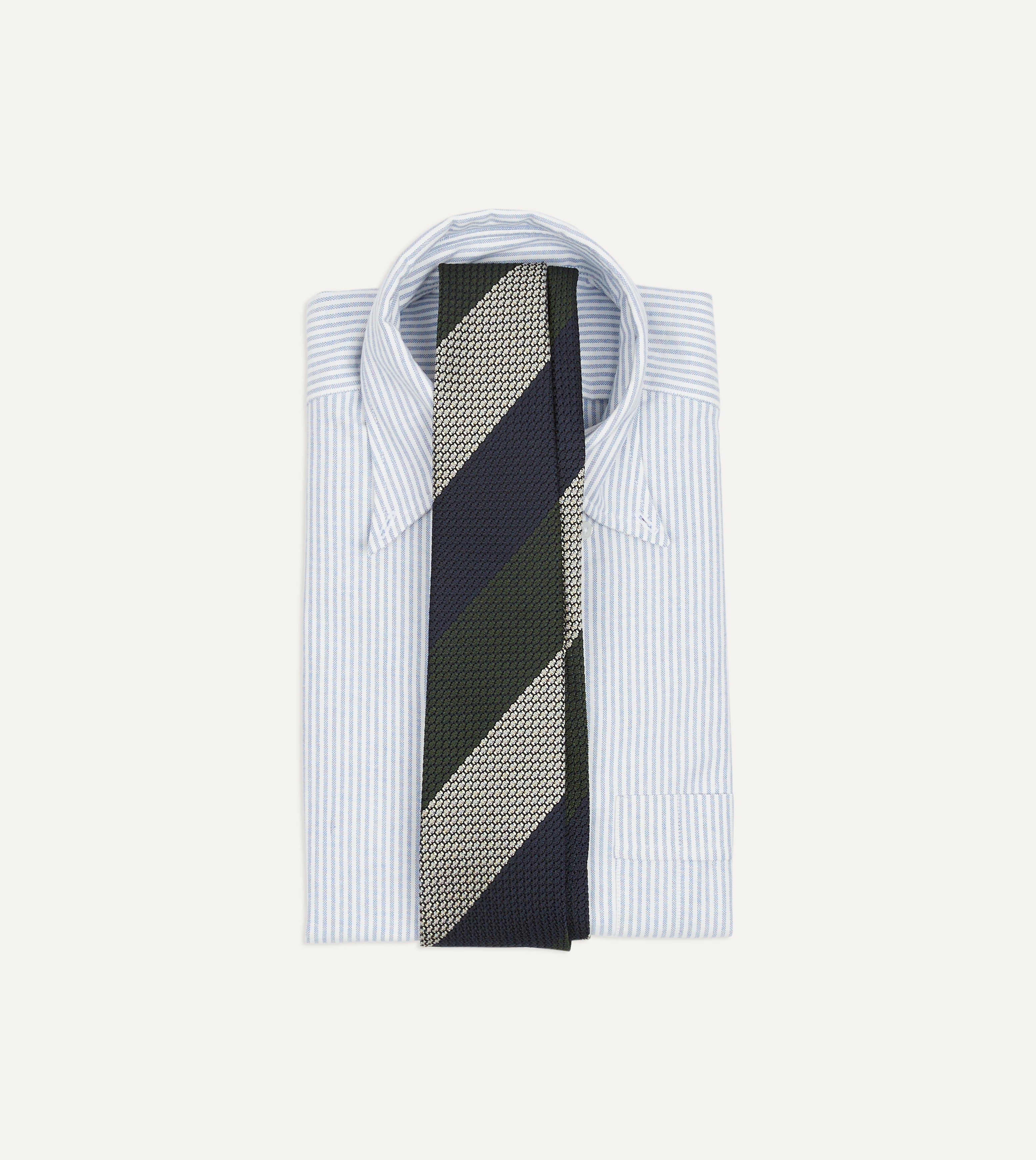 Navy, Green and White Wide Stripe Silk Grenadine Tie