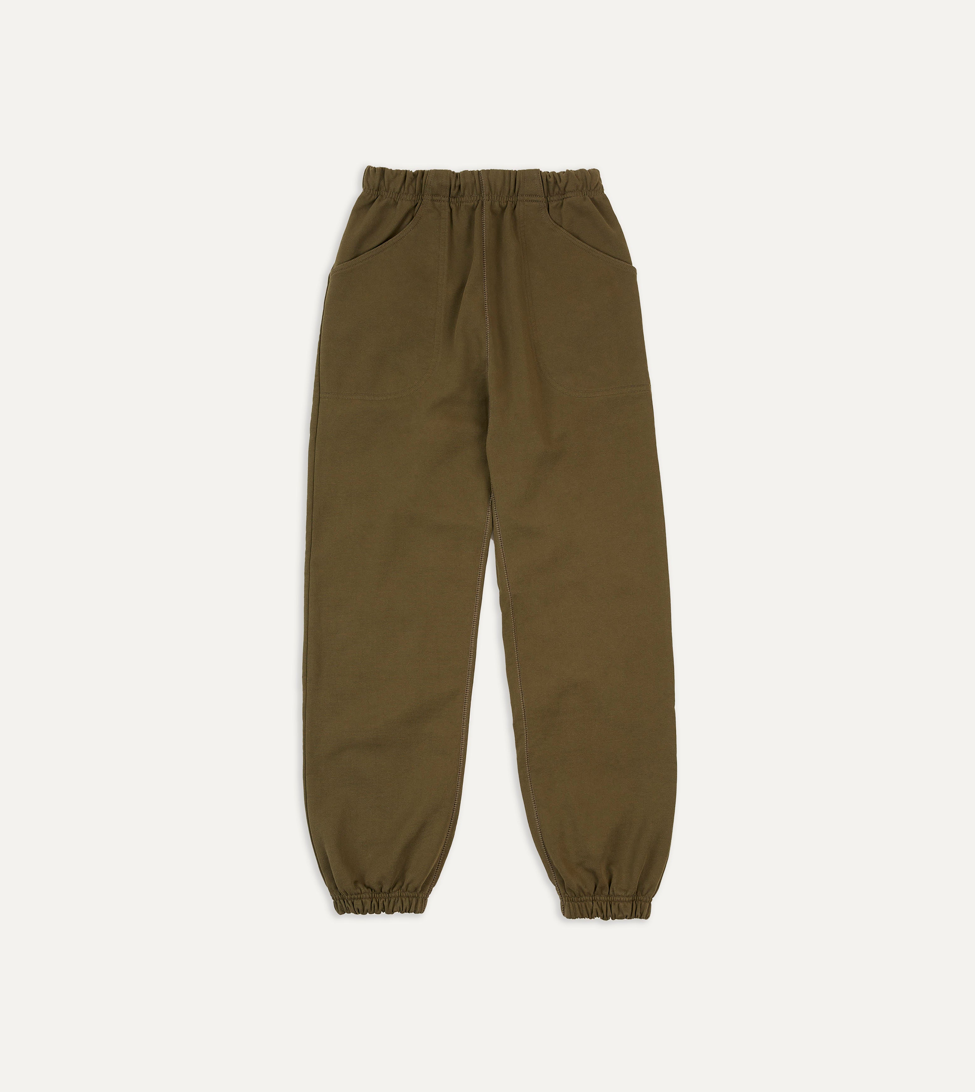 Styled after mid-century athletic gear, the flat drawstring waist and cuffs, slanted pockets and substantial weight of these jogging bottoms is authentic 20th century Americana, reimagined for the British sartorial climate.