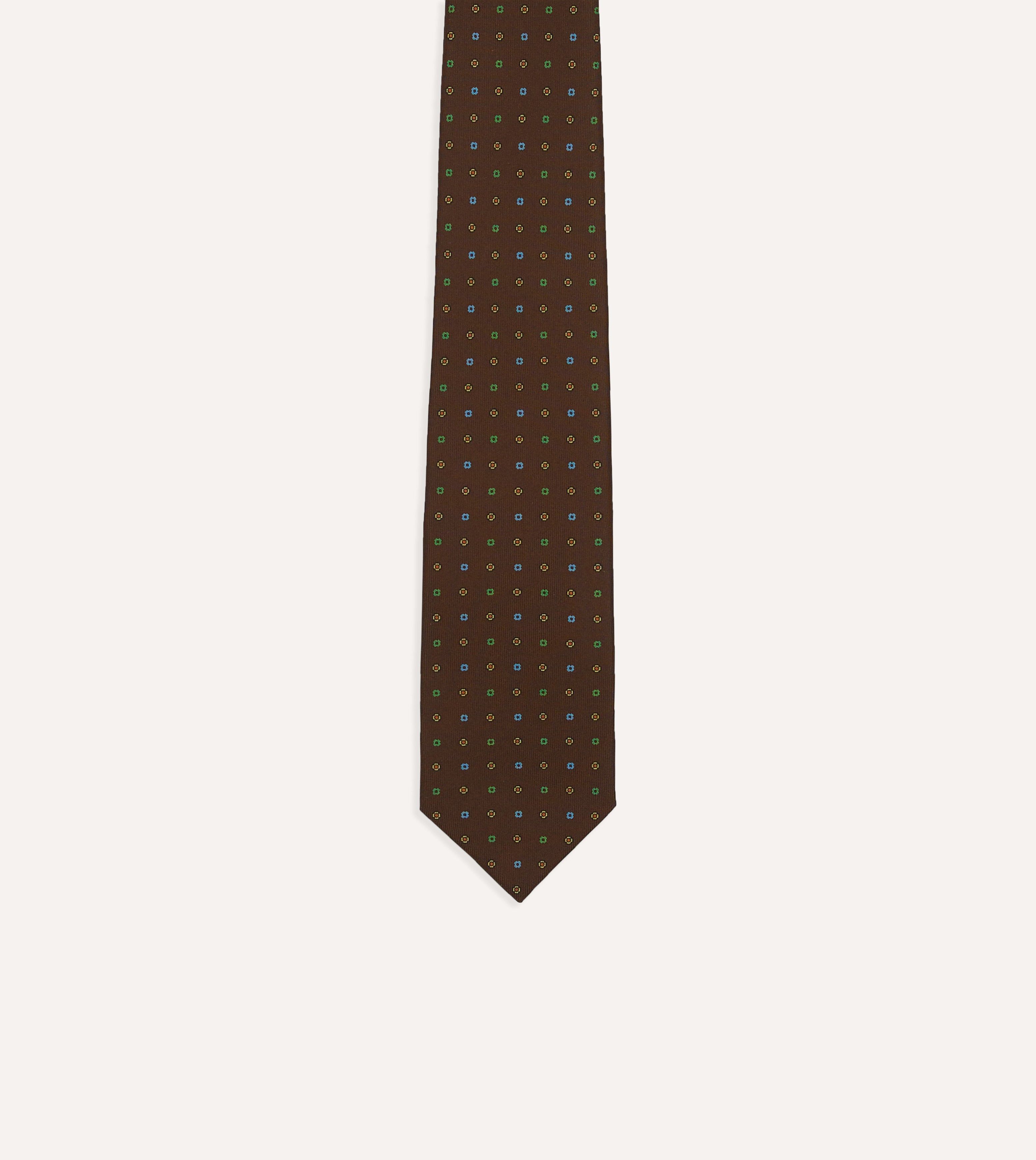 Brown Geometric Flower Print Silk Self-Tipped Tie