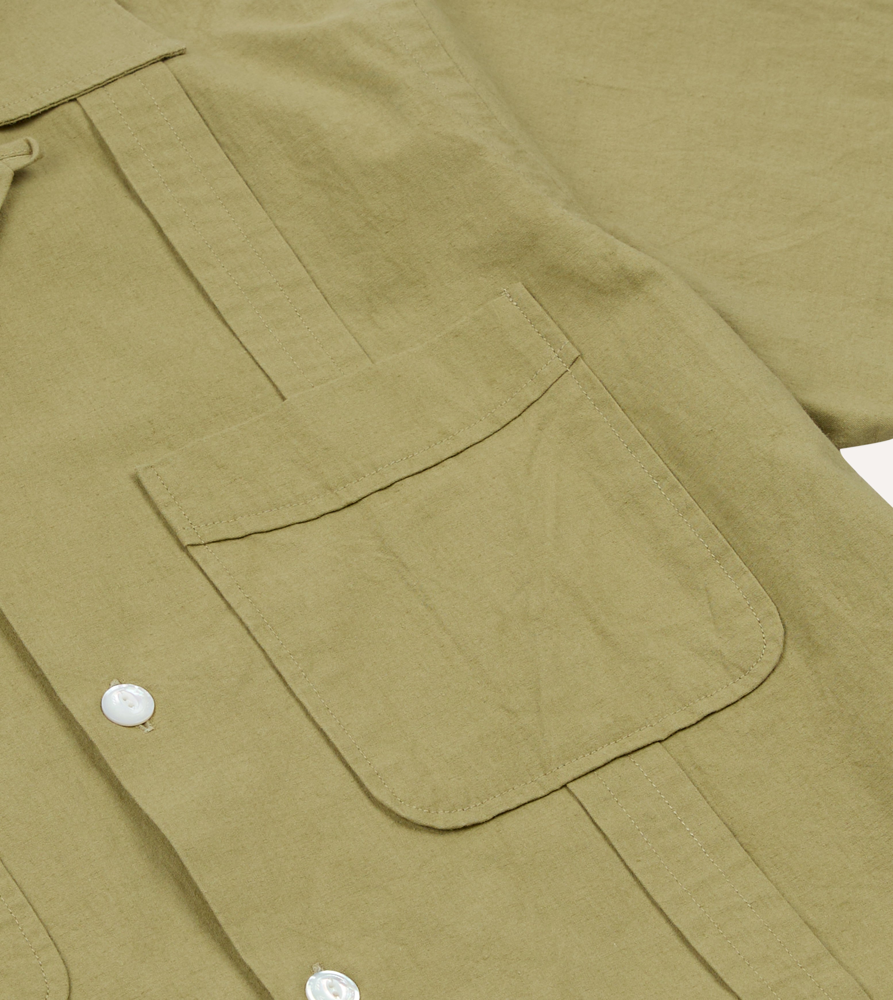 Khaki Cotton-Linen Crepe Cuban Shirt