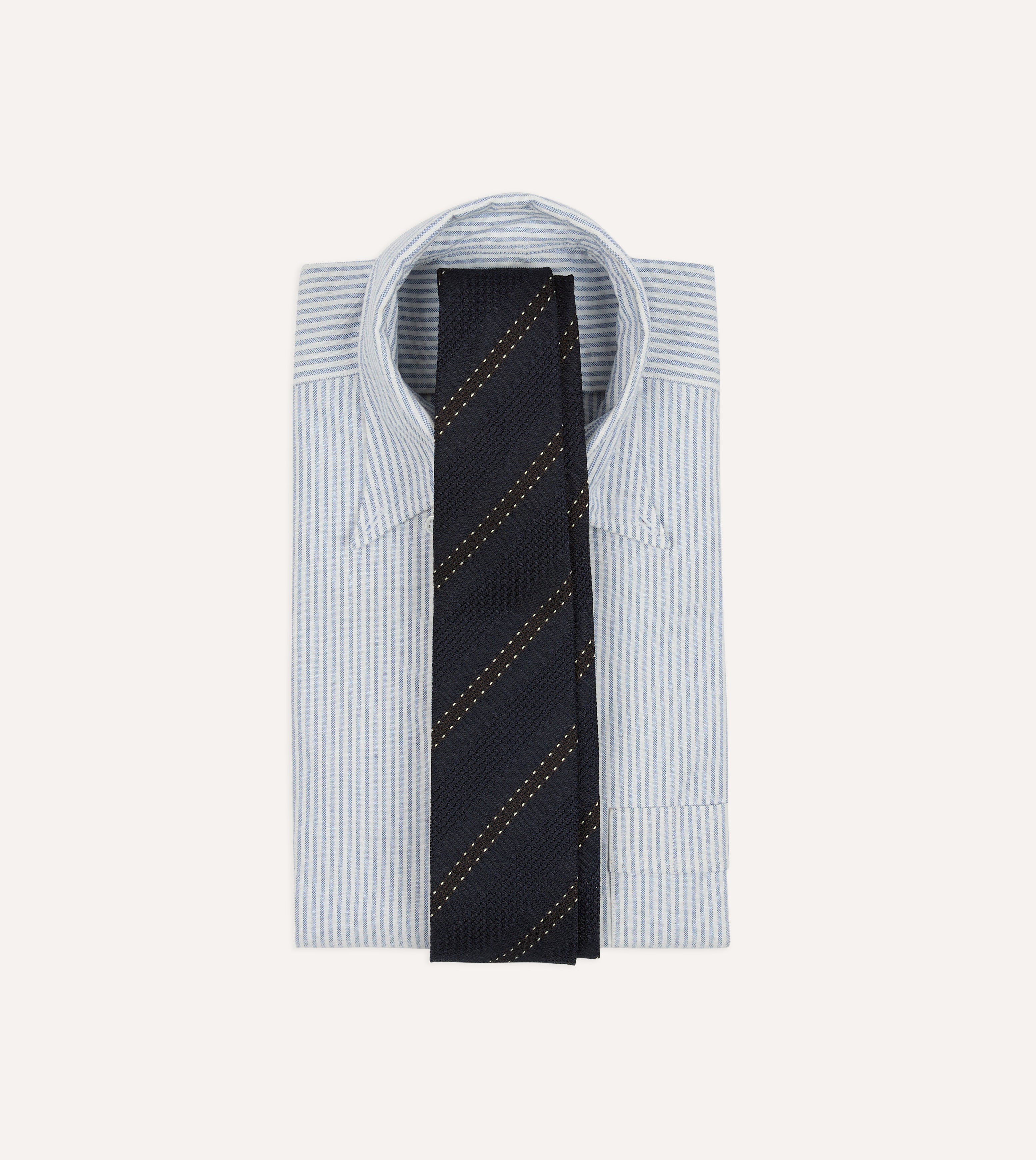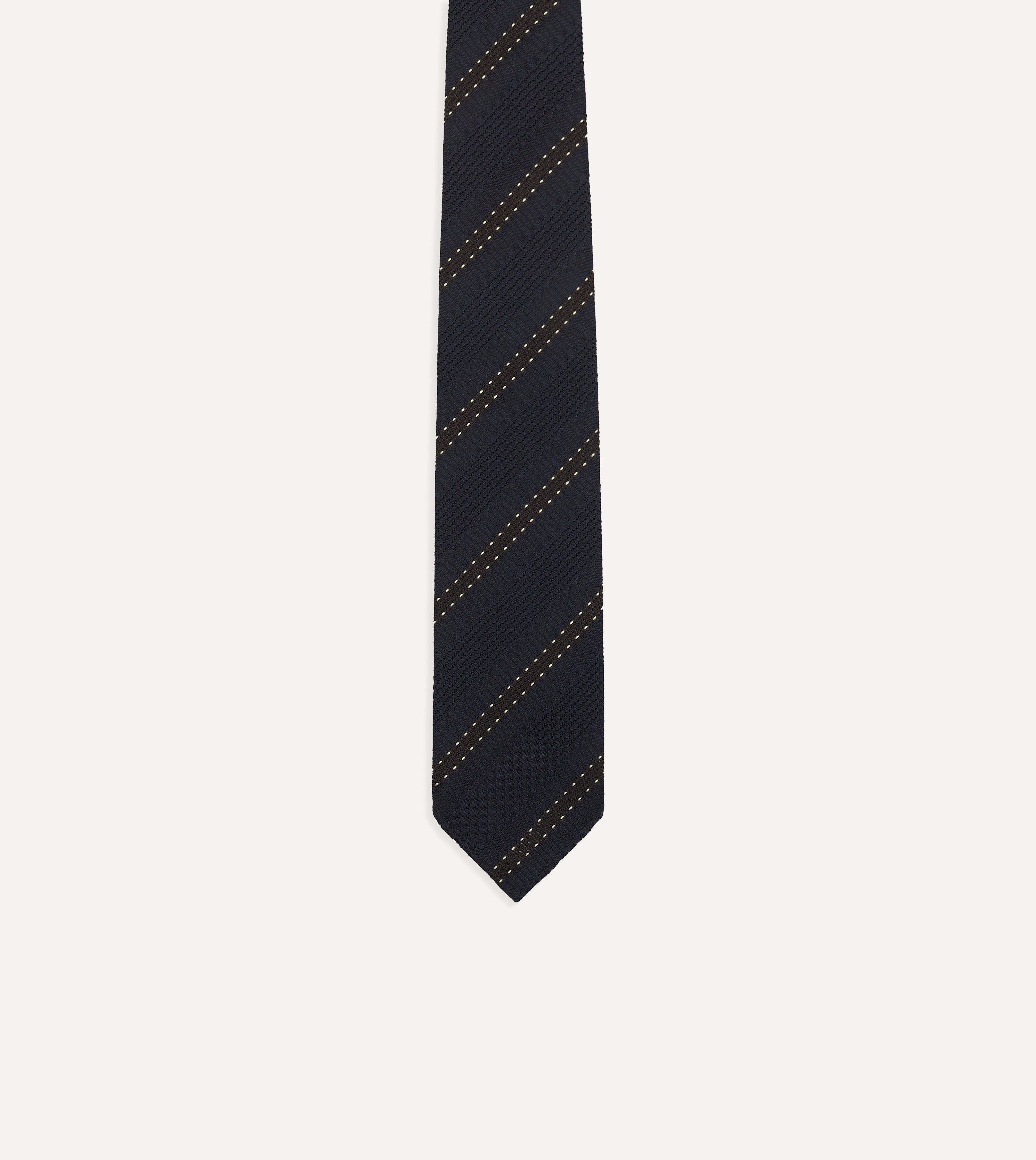 Navy and Brown Stitch Stripe Hand Rolled Silk Grenadine Tie