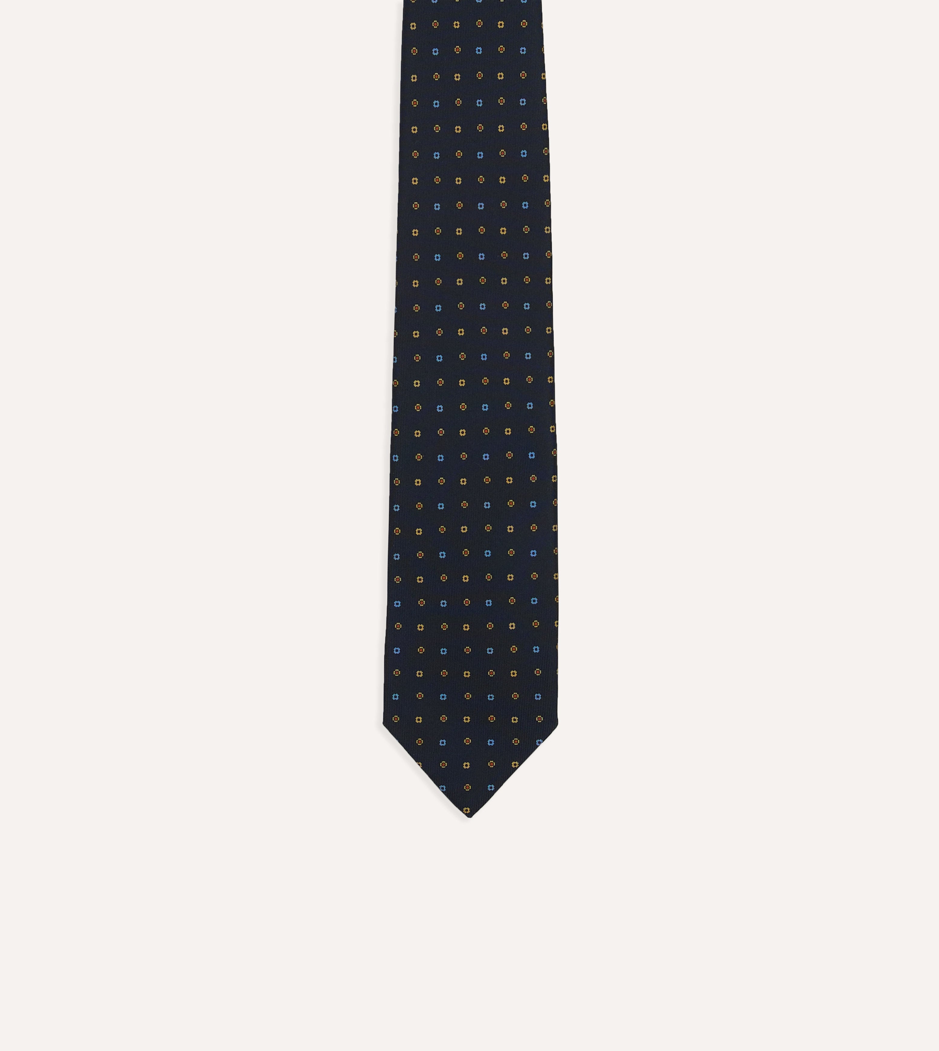 Navy Geometric Flower Print Silk Self-Tipped Tie