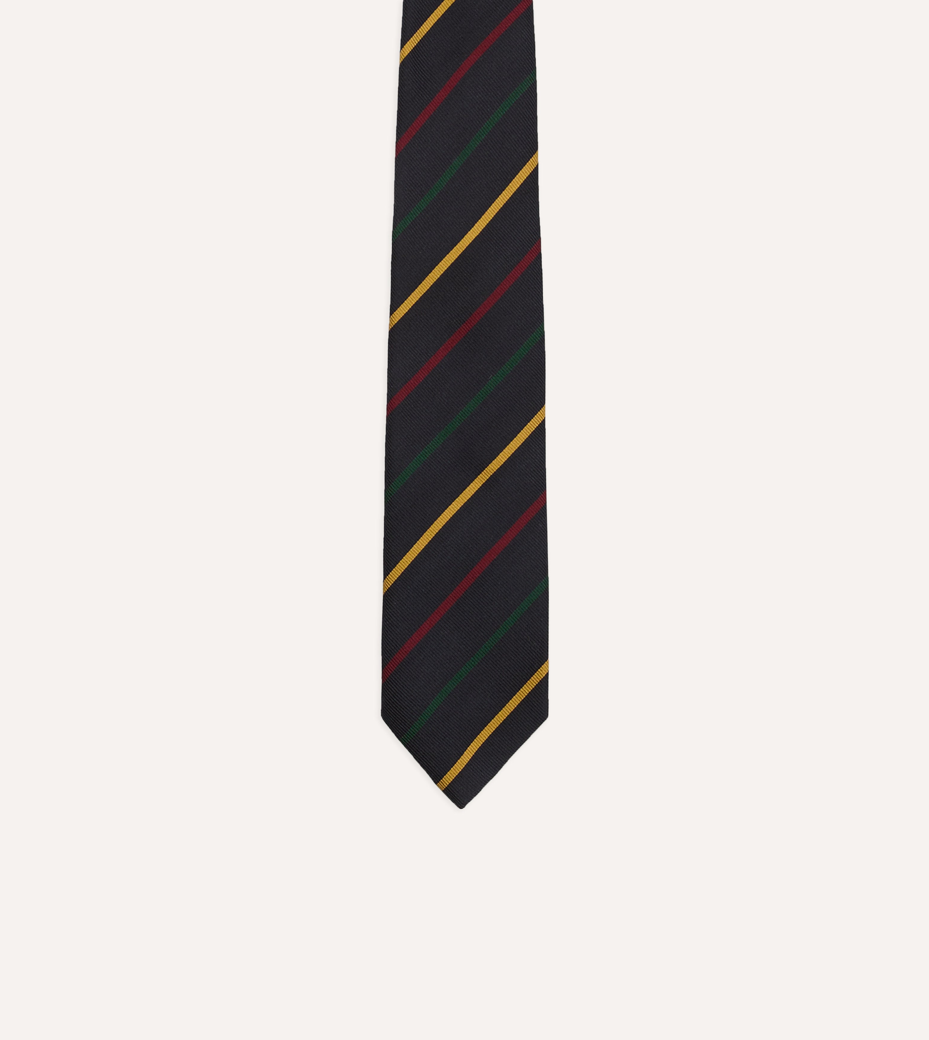 Navy, Green, Red and Yellow Stripe Repp Silk Tipped Tie