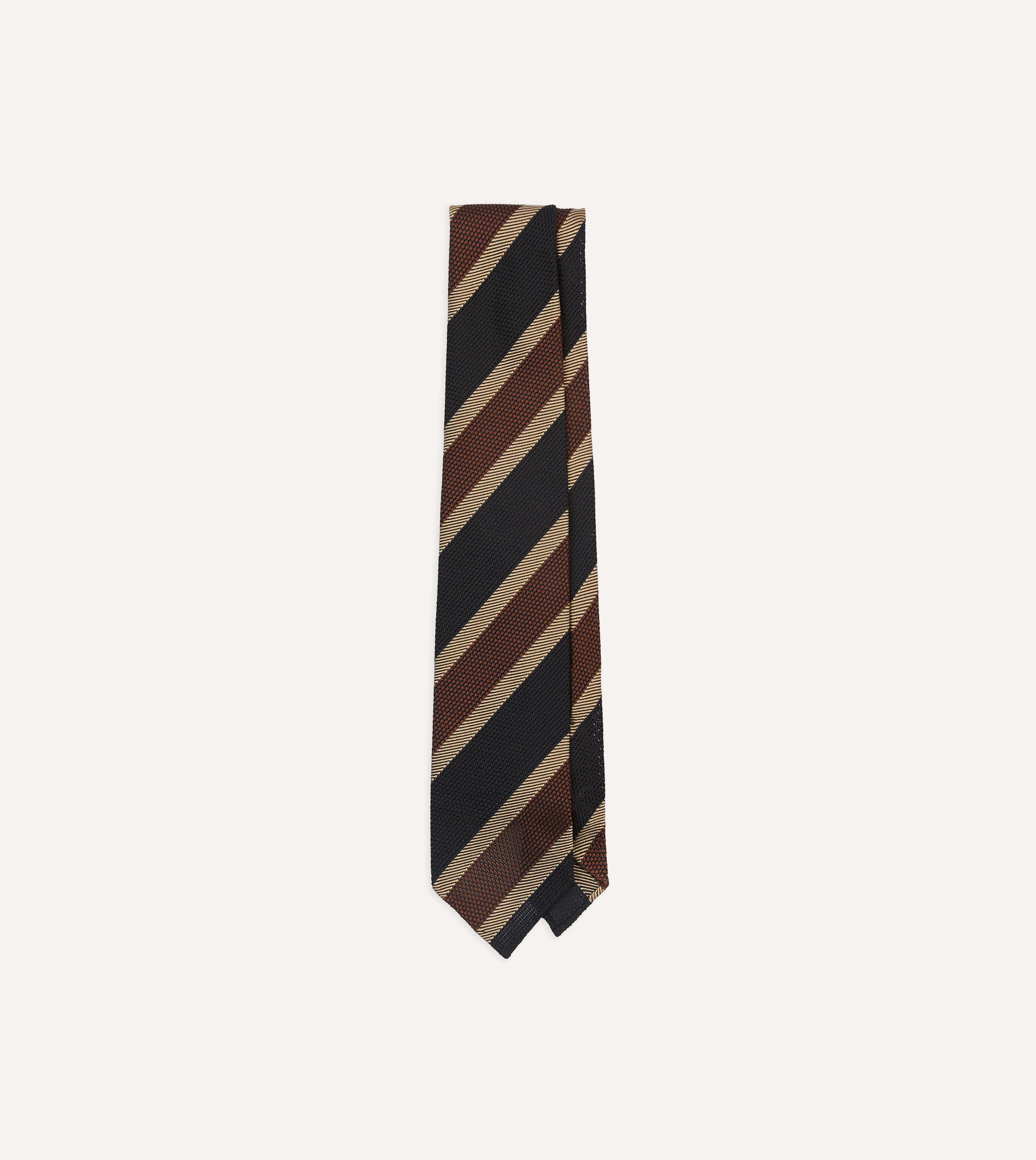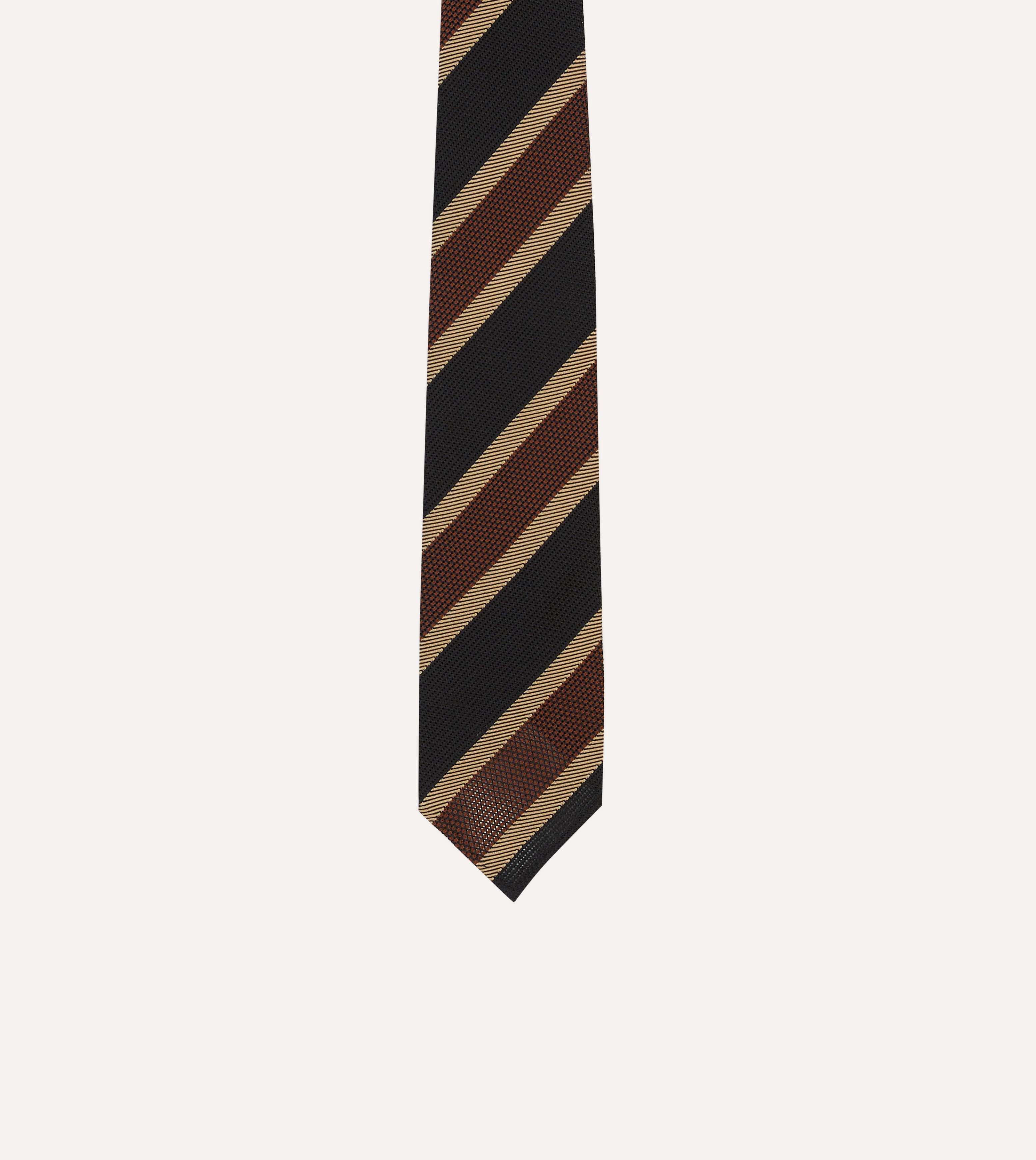Black and Brown Multi Stripe Hand Rolled Silk Grenadine Tie