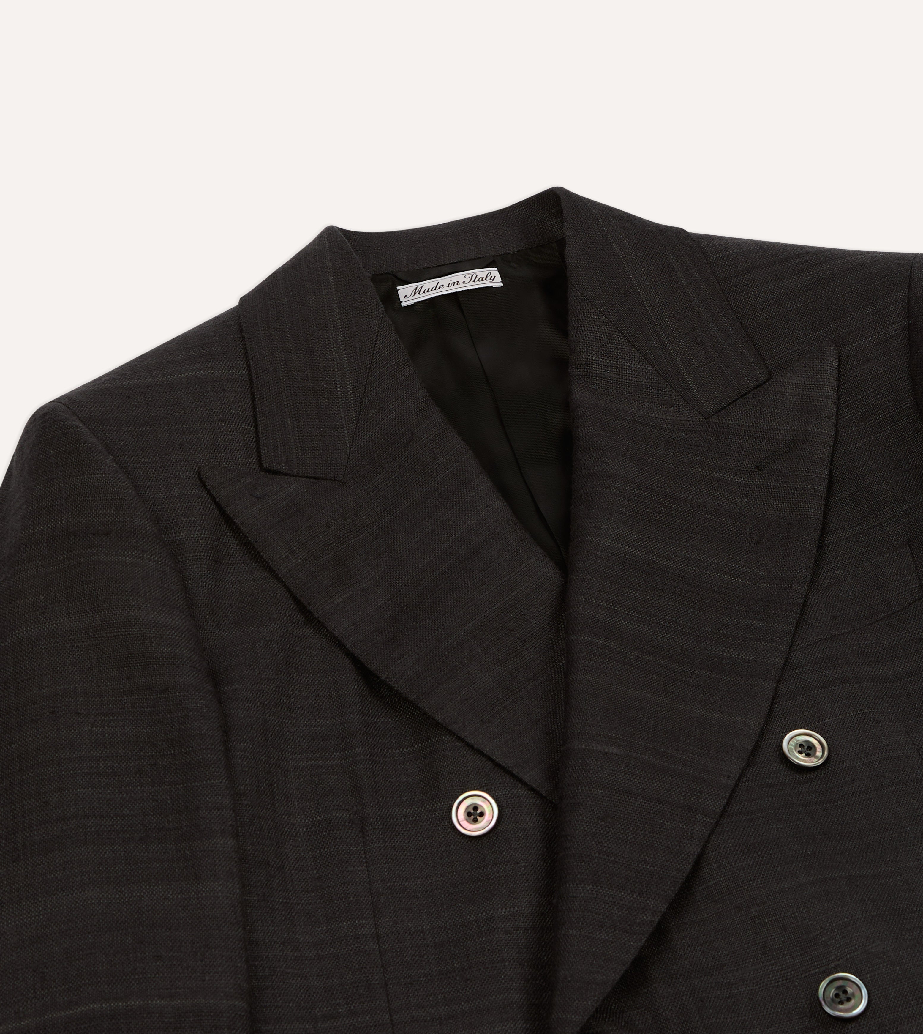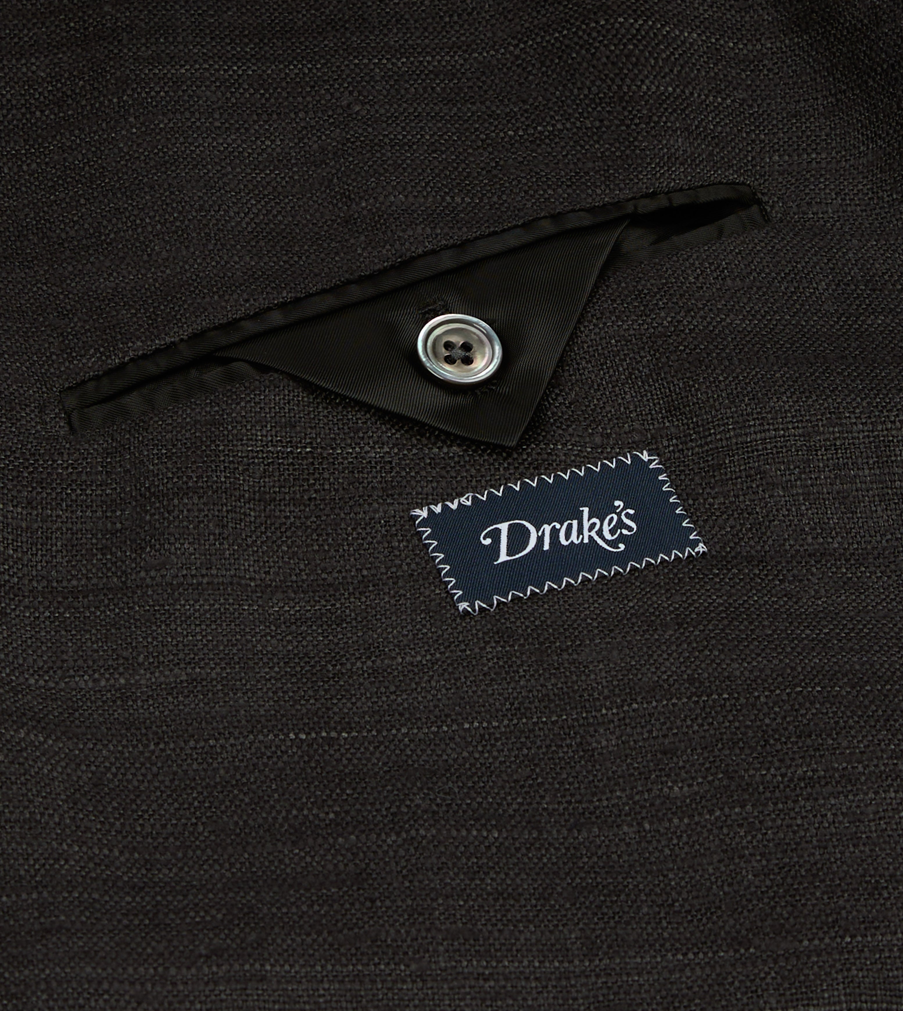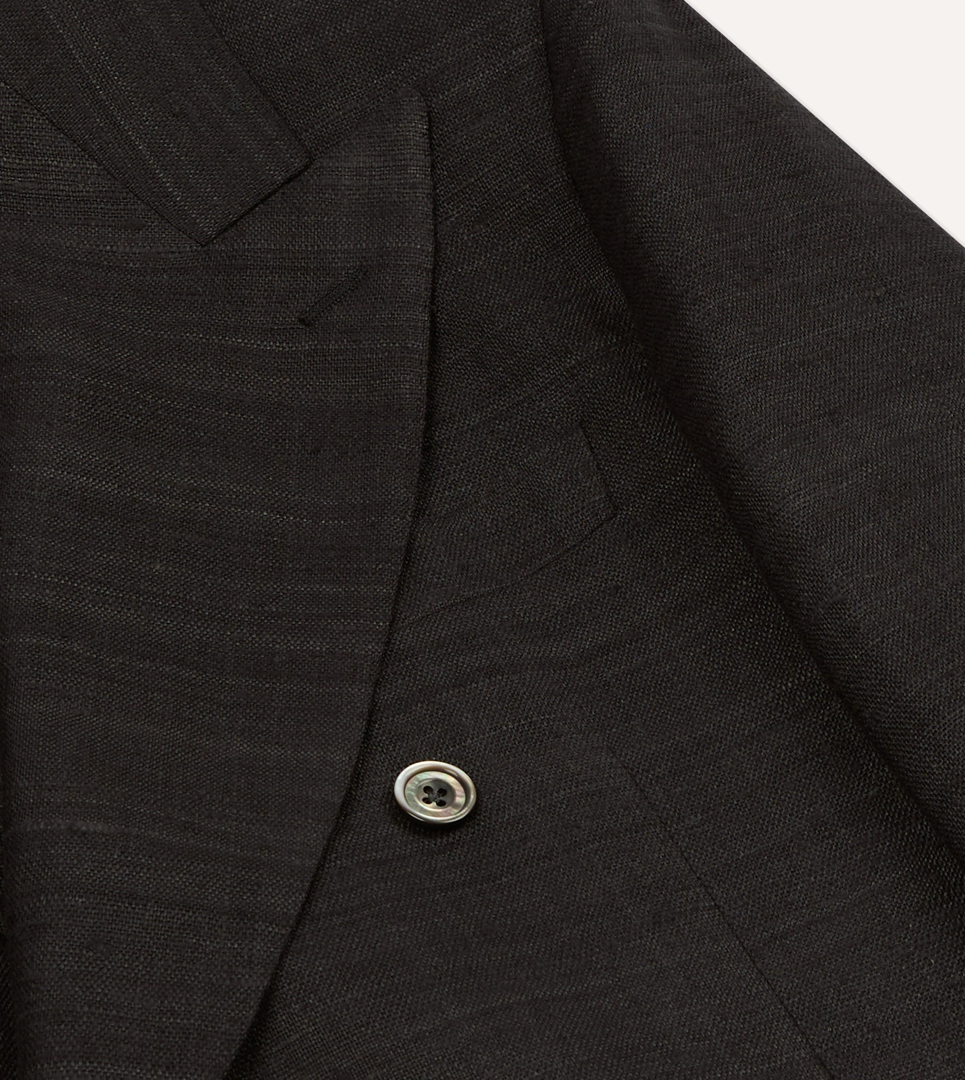 The double-breasted evening jacket brings with it all the ceremony of black tie, but in tussah silk it takes on a lighter, more expressive character. Softly tailored in the Drake’s house silhouette, with a natural shoulder and a gently bellied lapel, it retains the authority of formalwear while feeling effortless to wear.