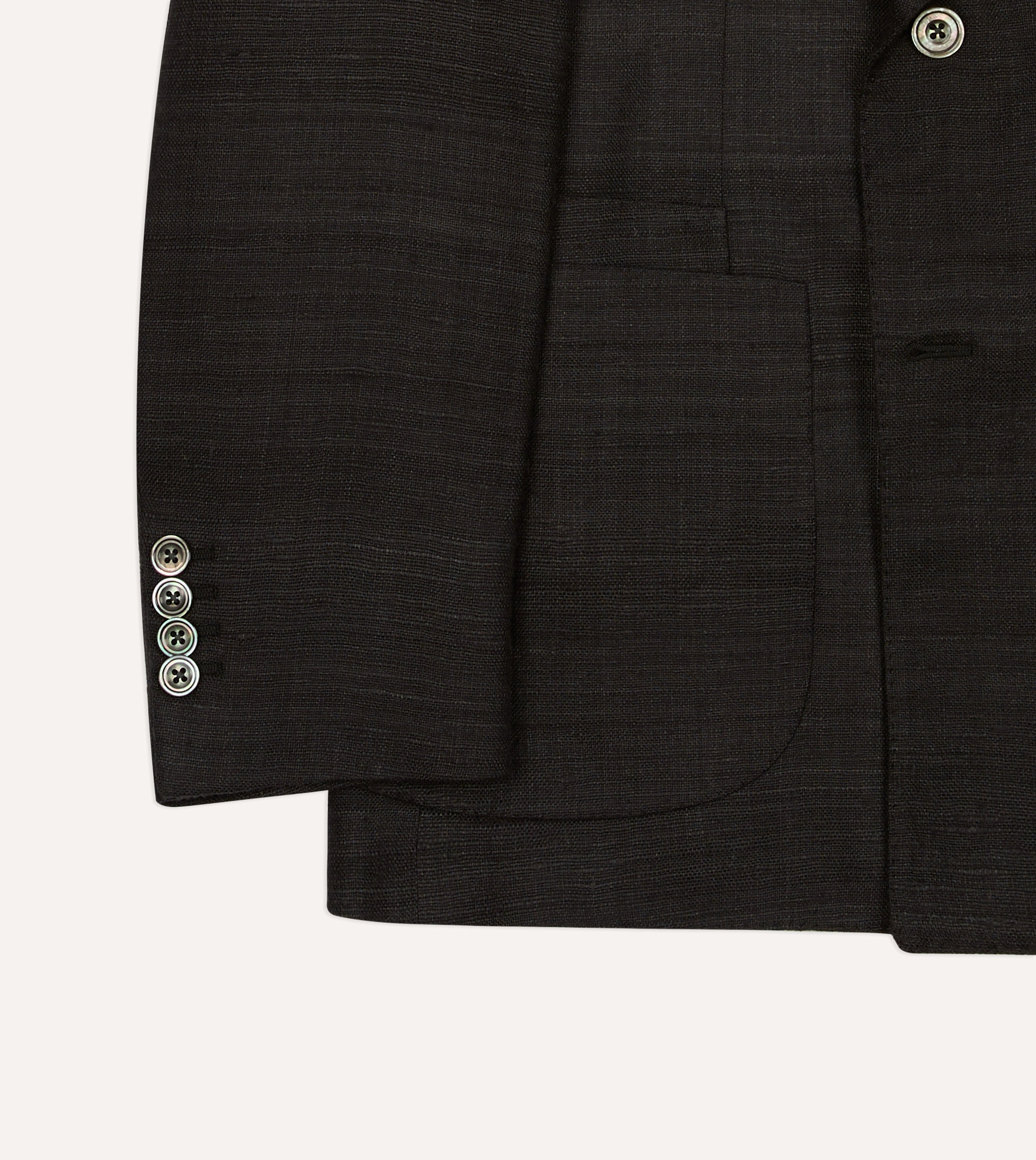 Cut from a 4.5oz tussah silk, the cloth has a distinctive slubbed texture and subtle lustre that sets it apart from the flat uniformity of wool counterparts. The result is a jacket with depth and presence, formal in intent, with a tactile richness and relaxed elegance that makes it suited to evenings where personality counts as much as tradition.