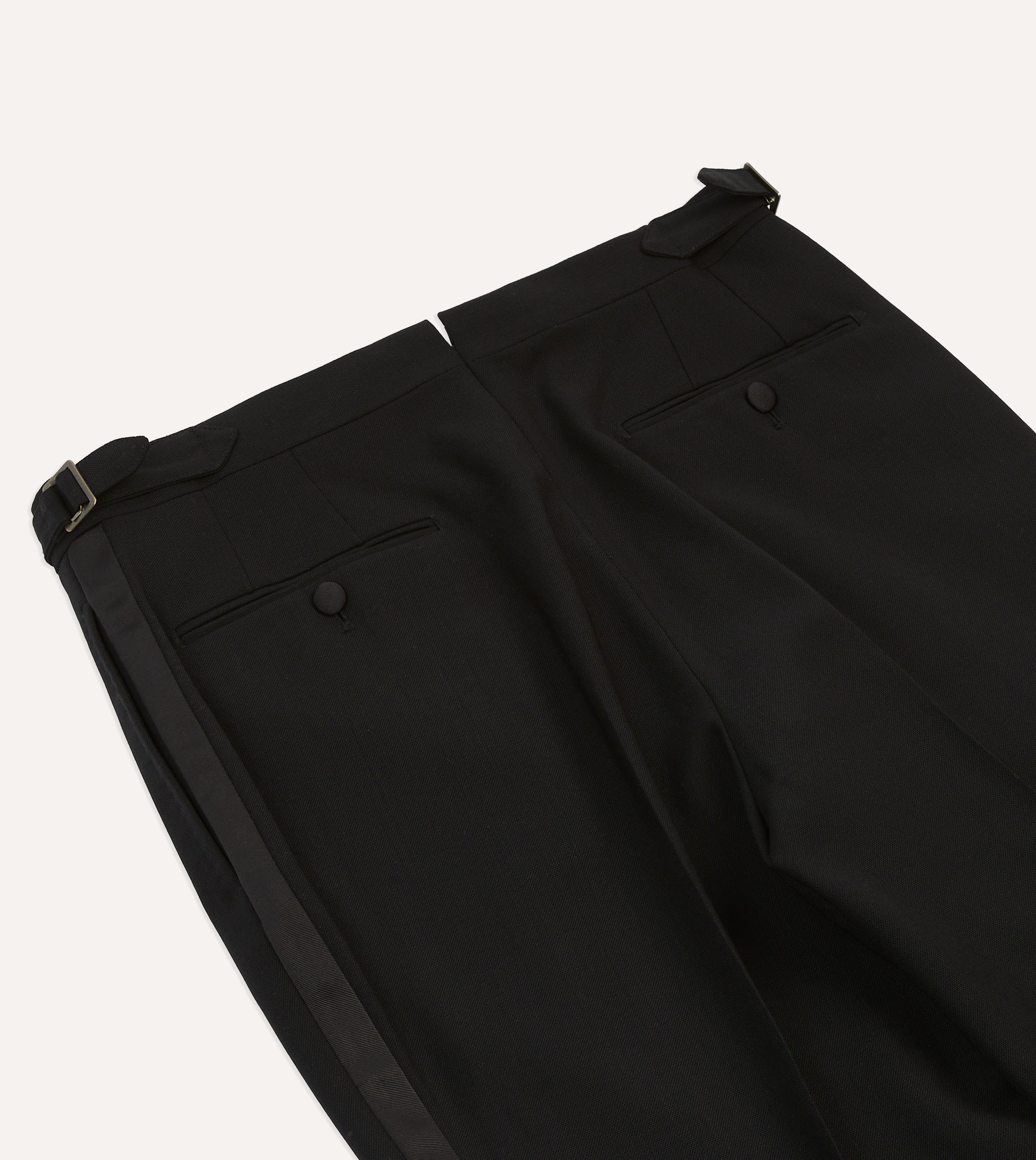 Crafted from a 12oz Merino wool cloth, these half-lined trousers feature understated details such as an extended tab front, French bearer buttoning with interior waistband curtaining, an after-dinner split to the rear, and six buttons for braces.