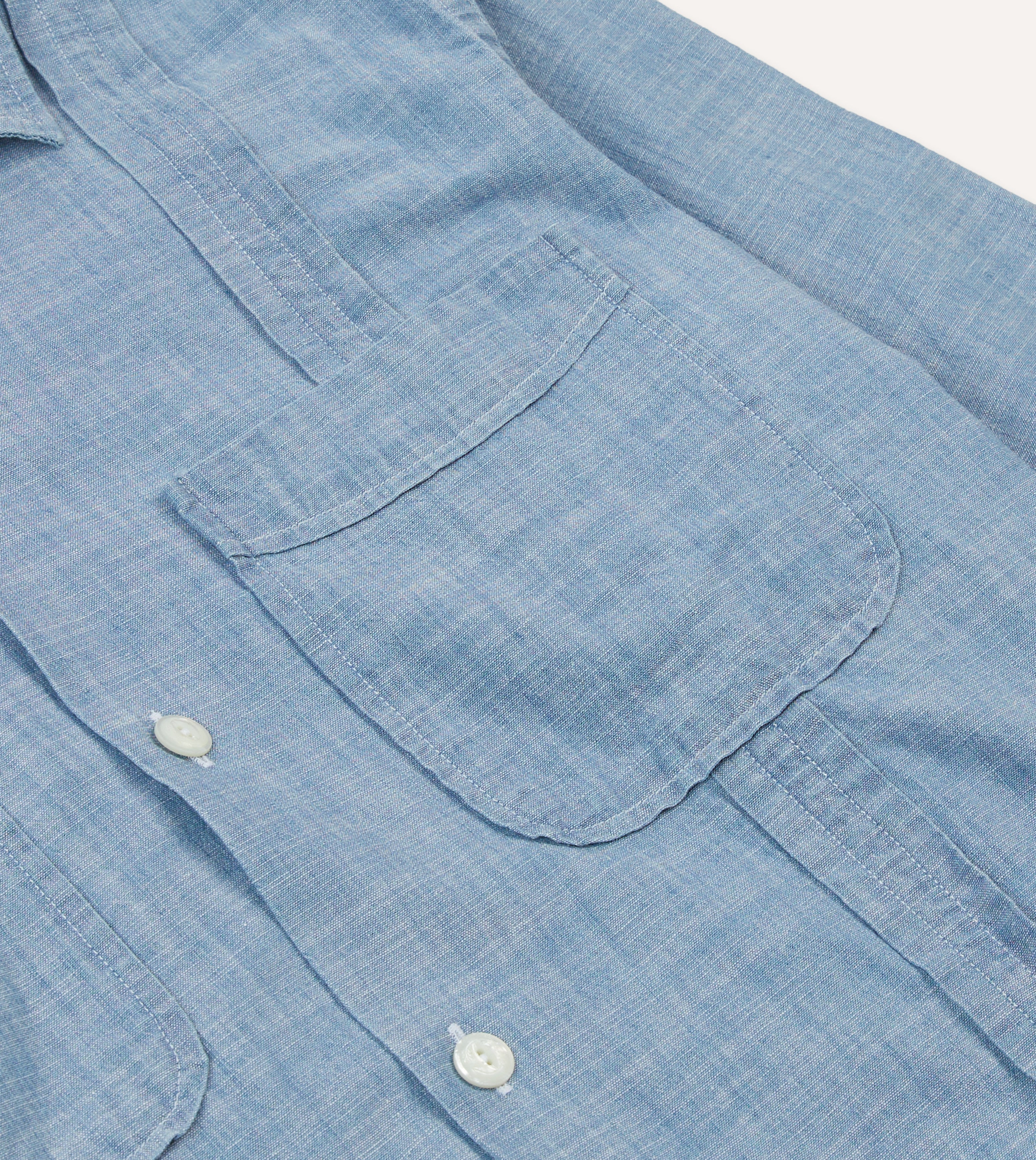 Bleach Wash Chambray Cotton Long Sleeve Cuban Shirt