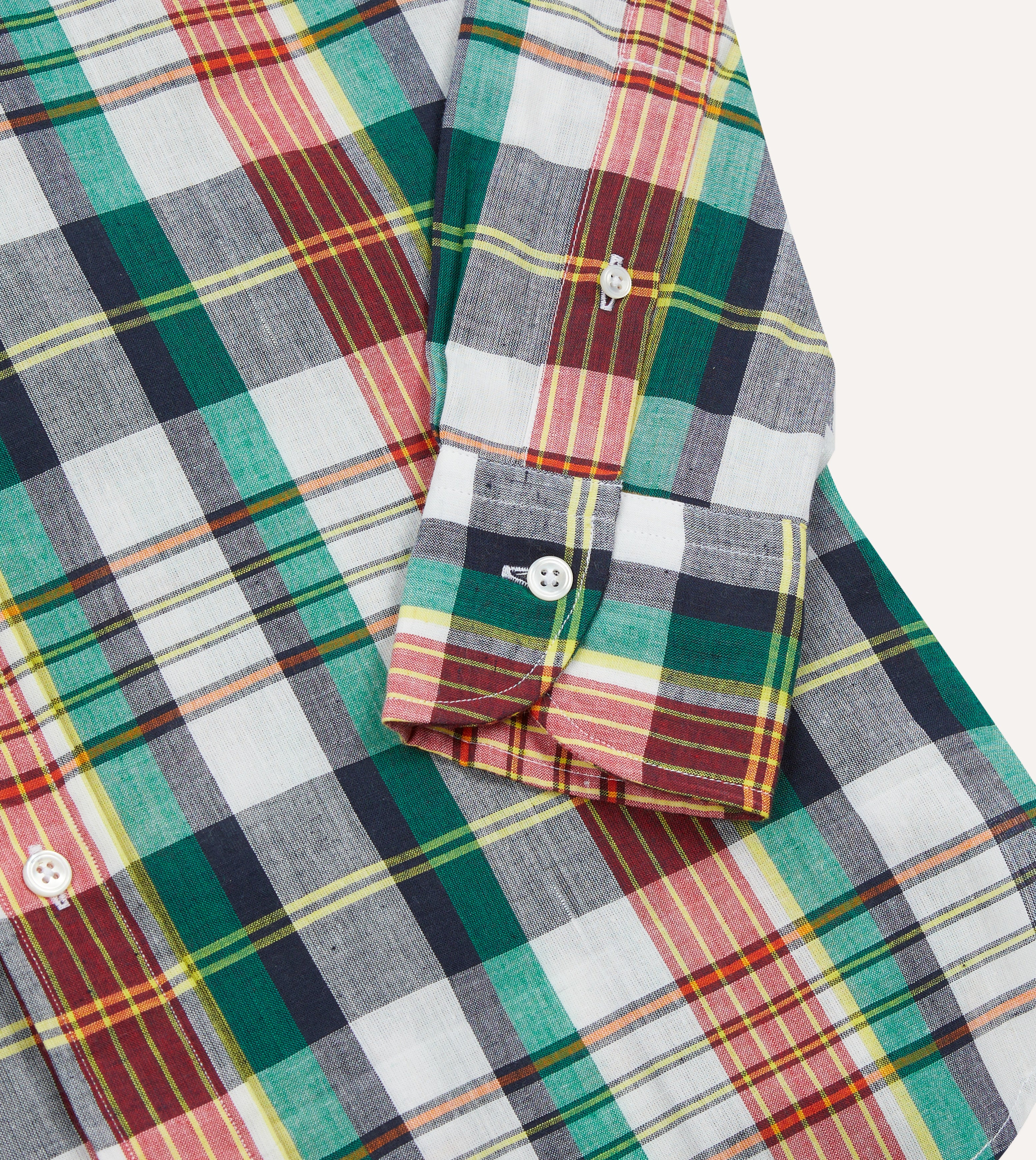 Madras is a certified summer staple; woven in in Chennai, India (formerly named Madras) from a delicate, short-staple cotton fibre that is home-spun by hand, resulting in the slubby unique texture.