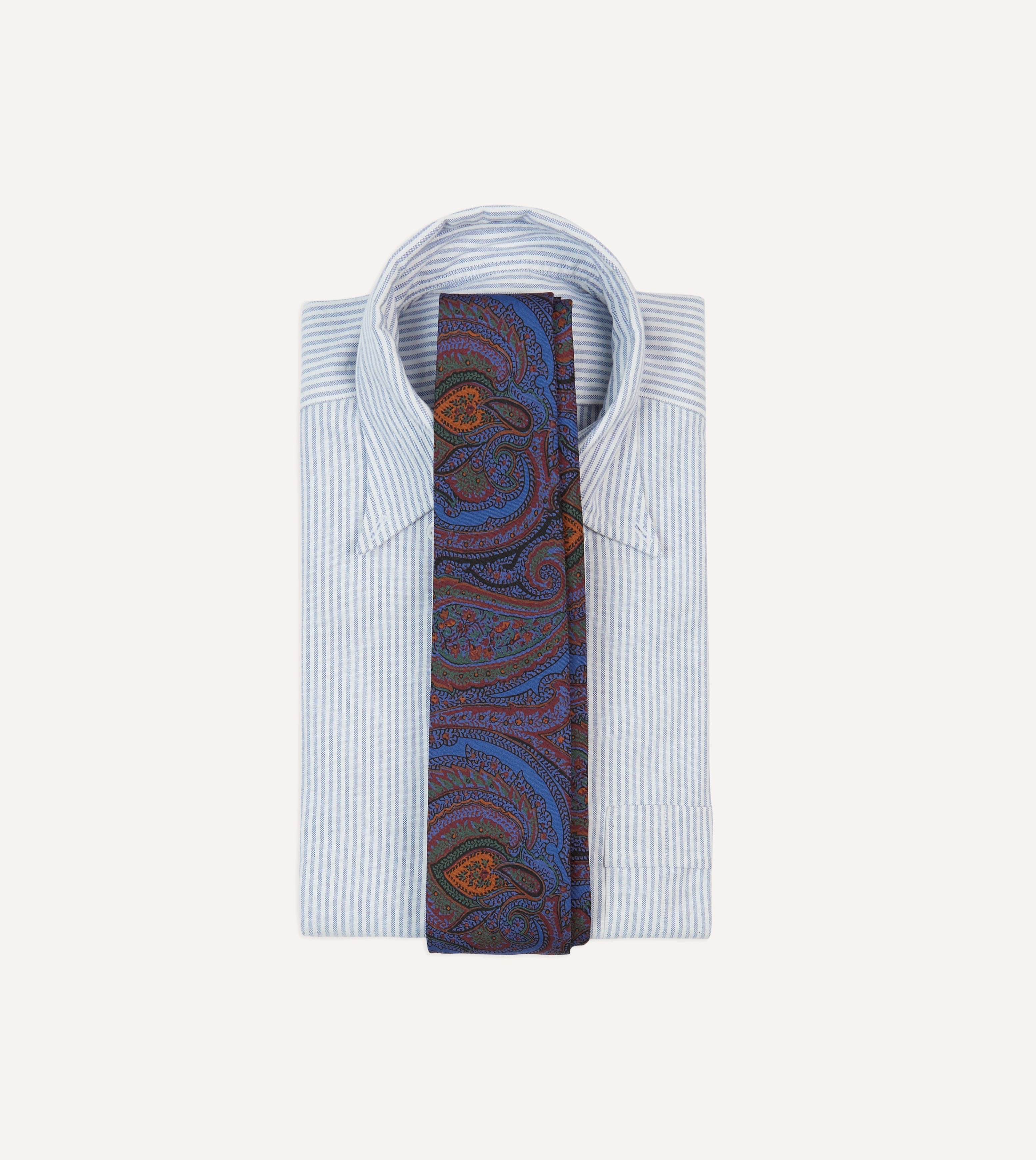Blue Large Paisley Print Madder Silk Self-Tipped Tie