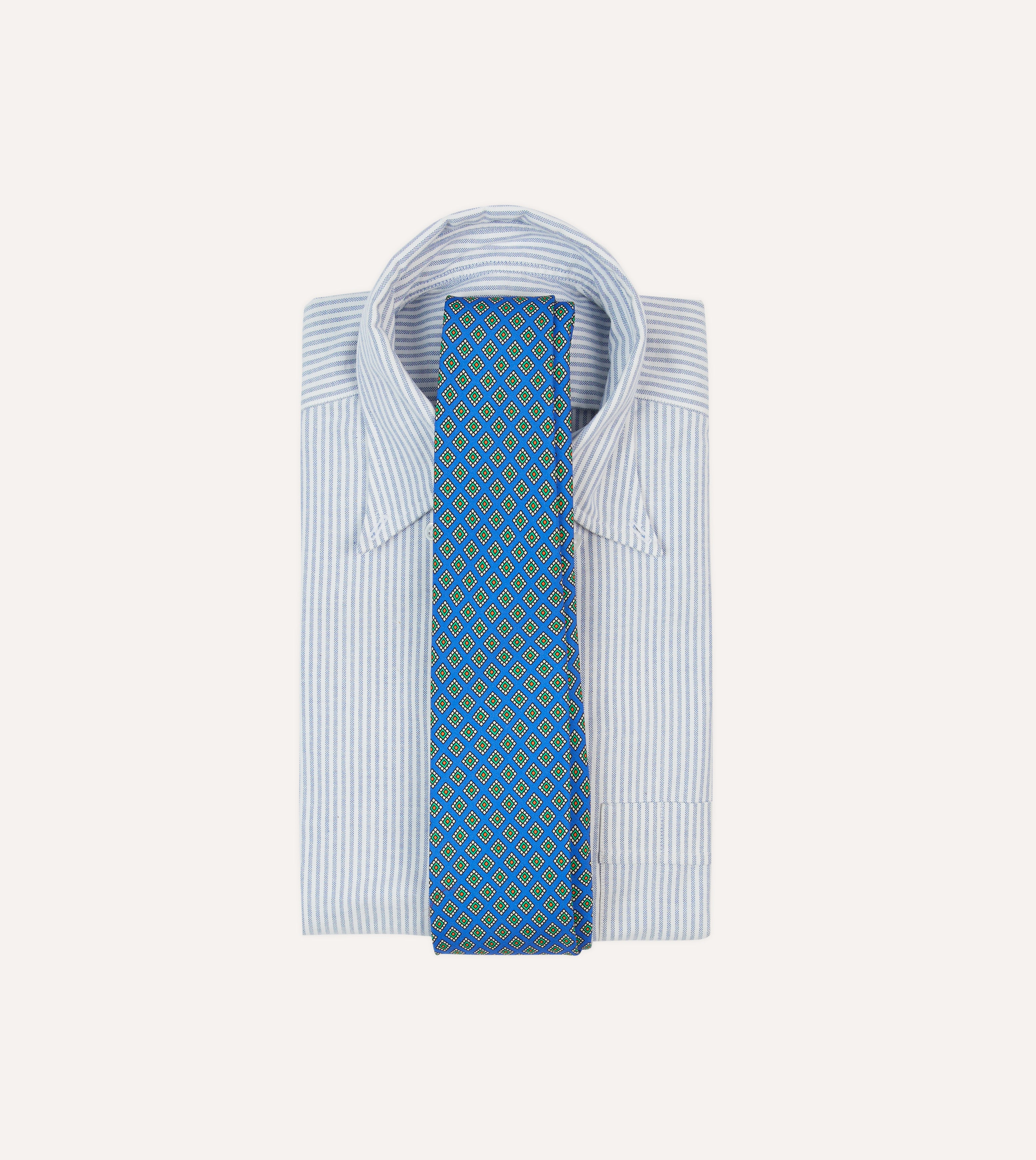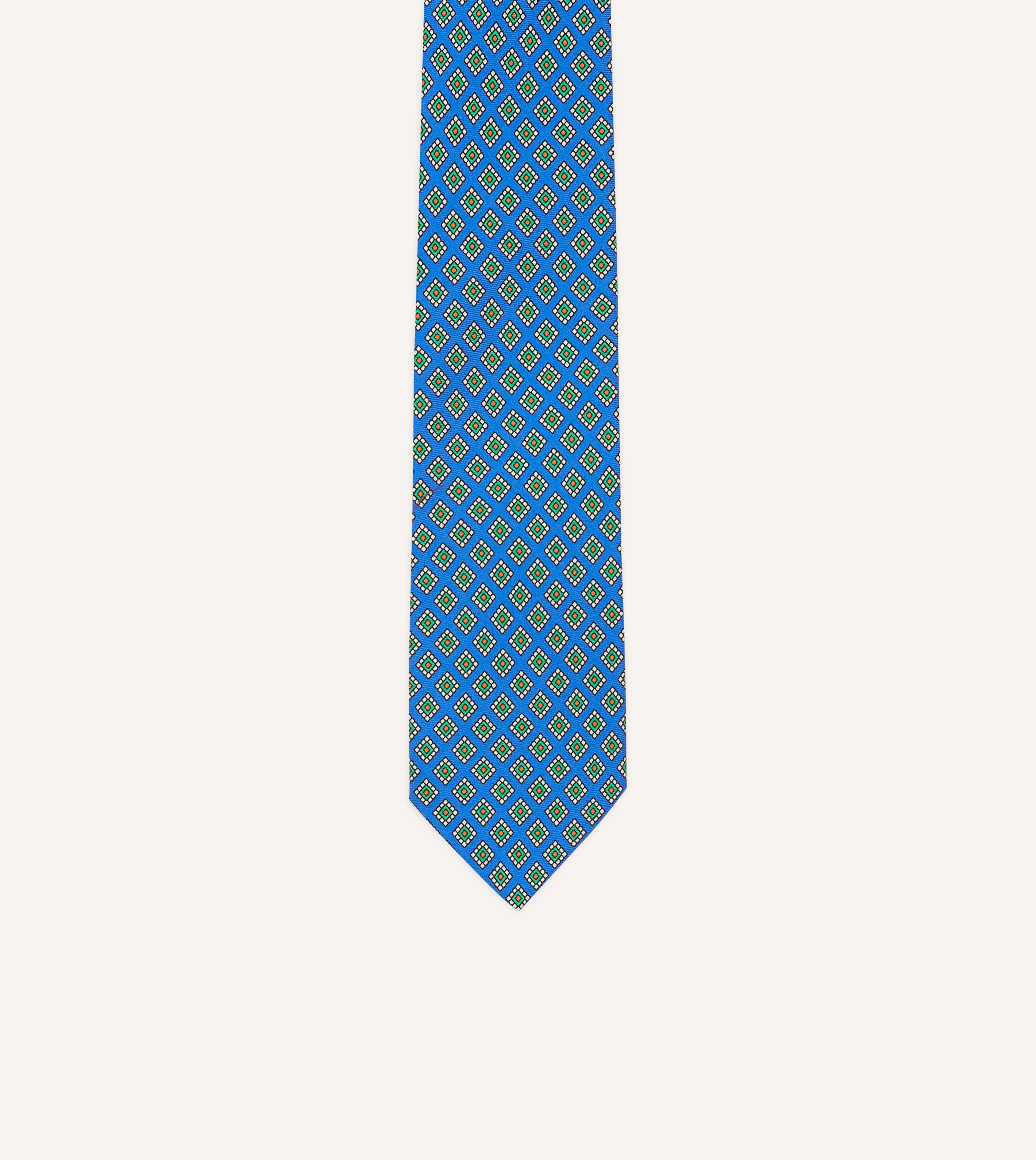 An ornate square motif simply exudes elegance, particularly when printed on pure silk and hand rolled by our dedicated tiemakers in the heart of east London.