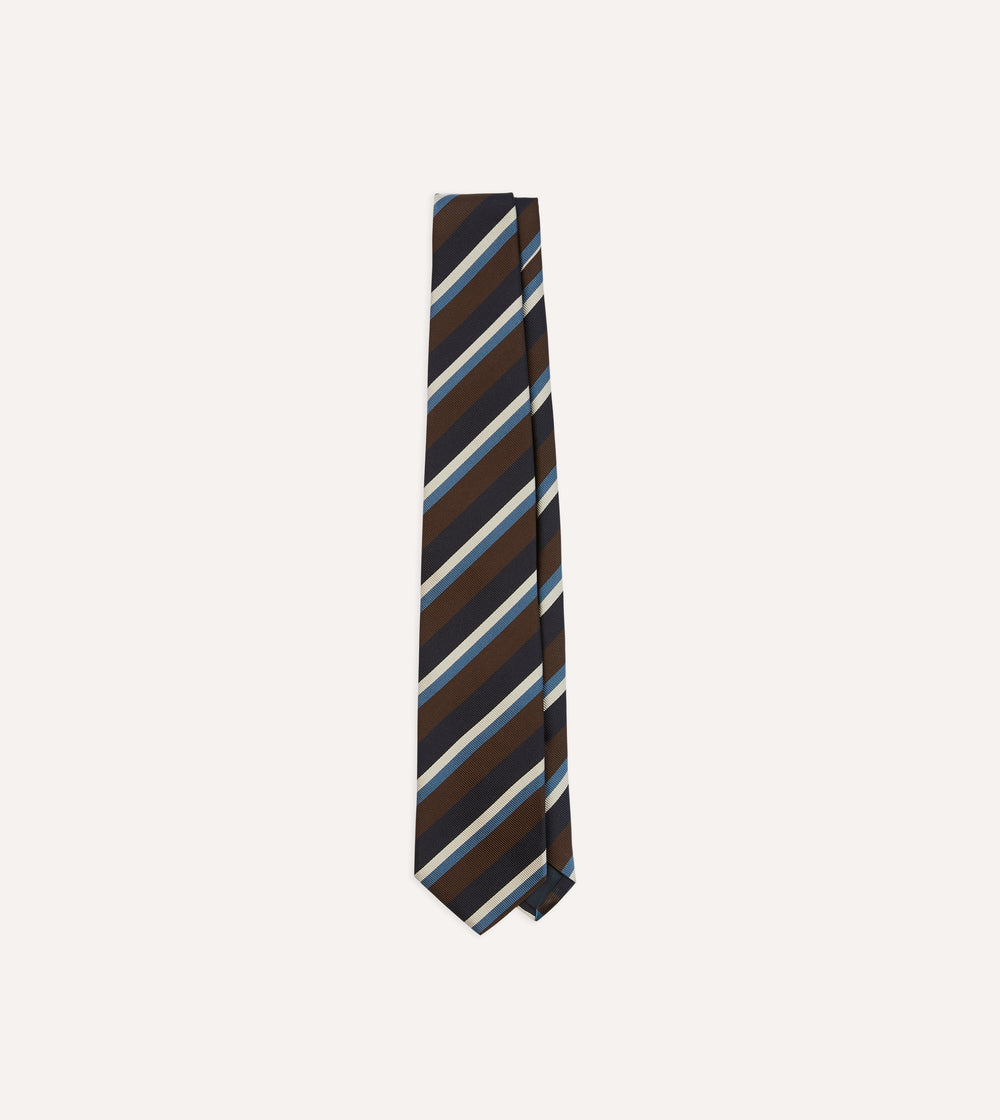 Brown, Blue and White Multi Stripe Mogador Silk Tipped Tie