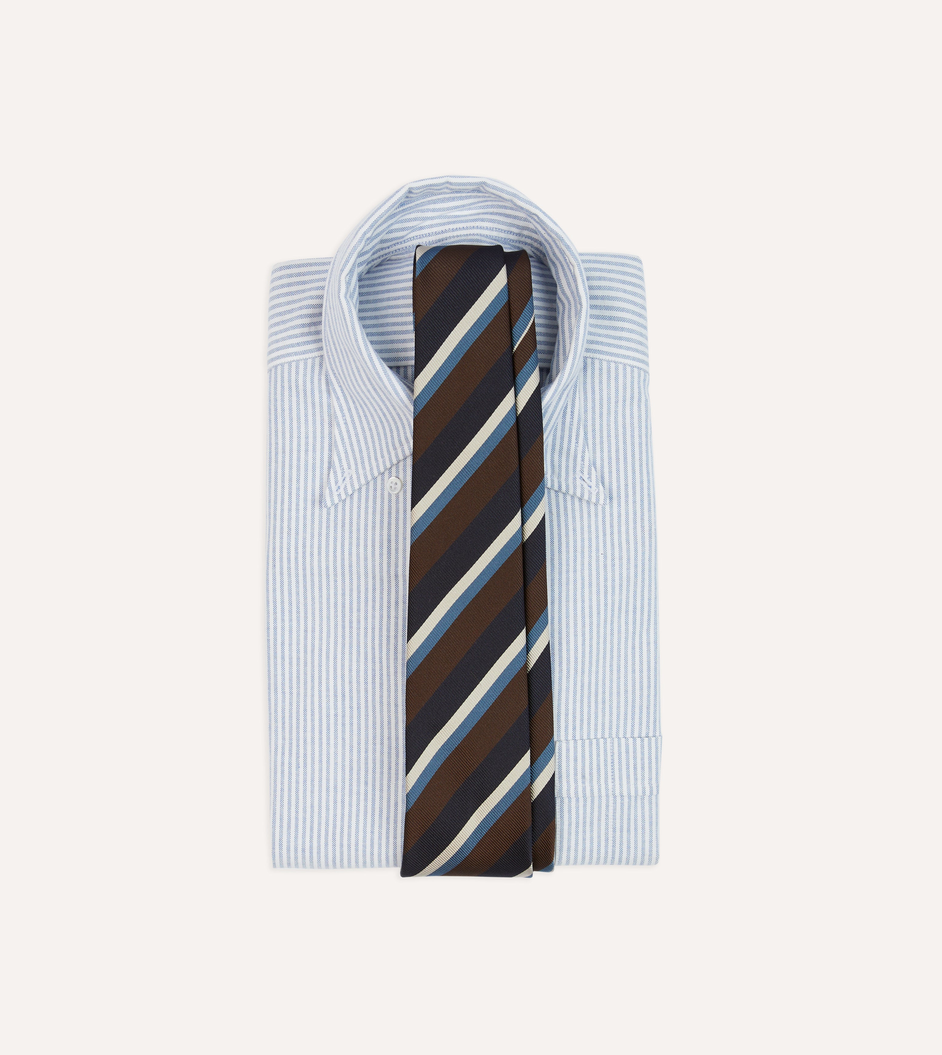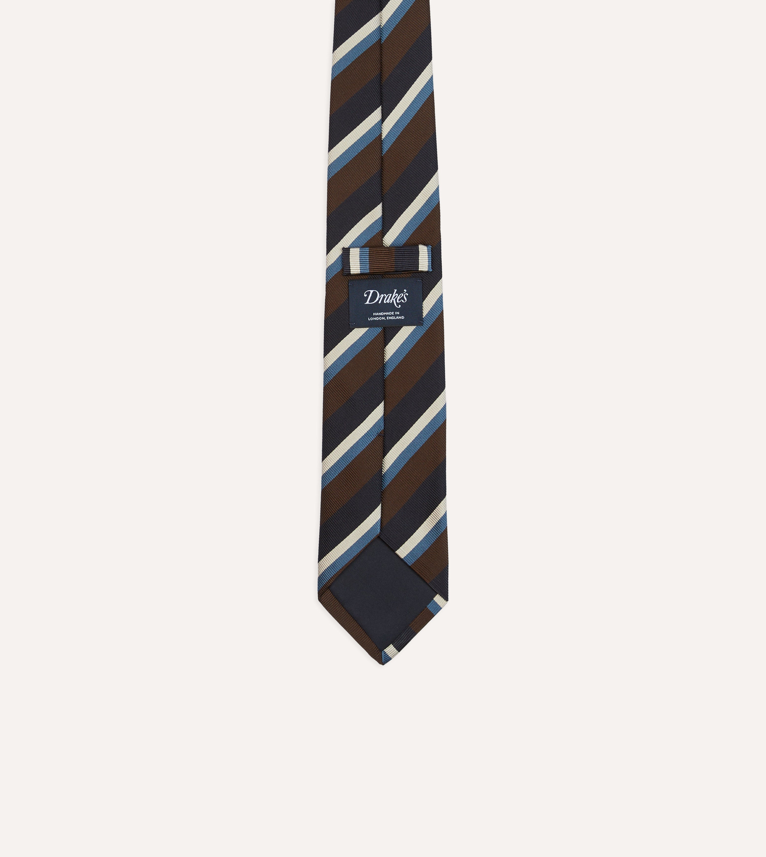 Brown, Blue and White Multi Stripe Mogador Silk Tipped Tie