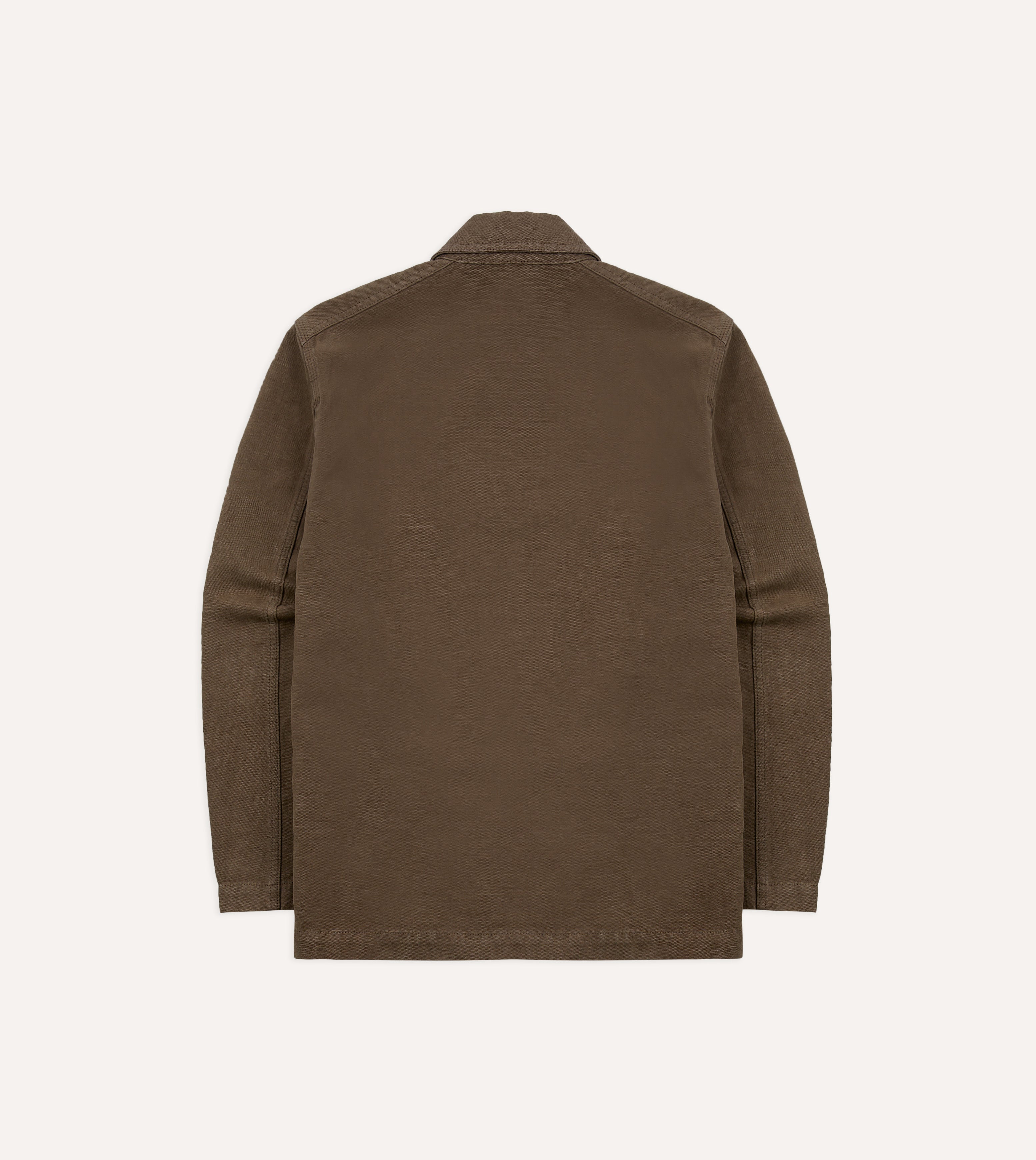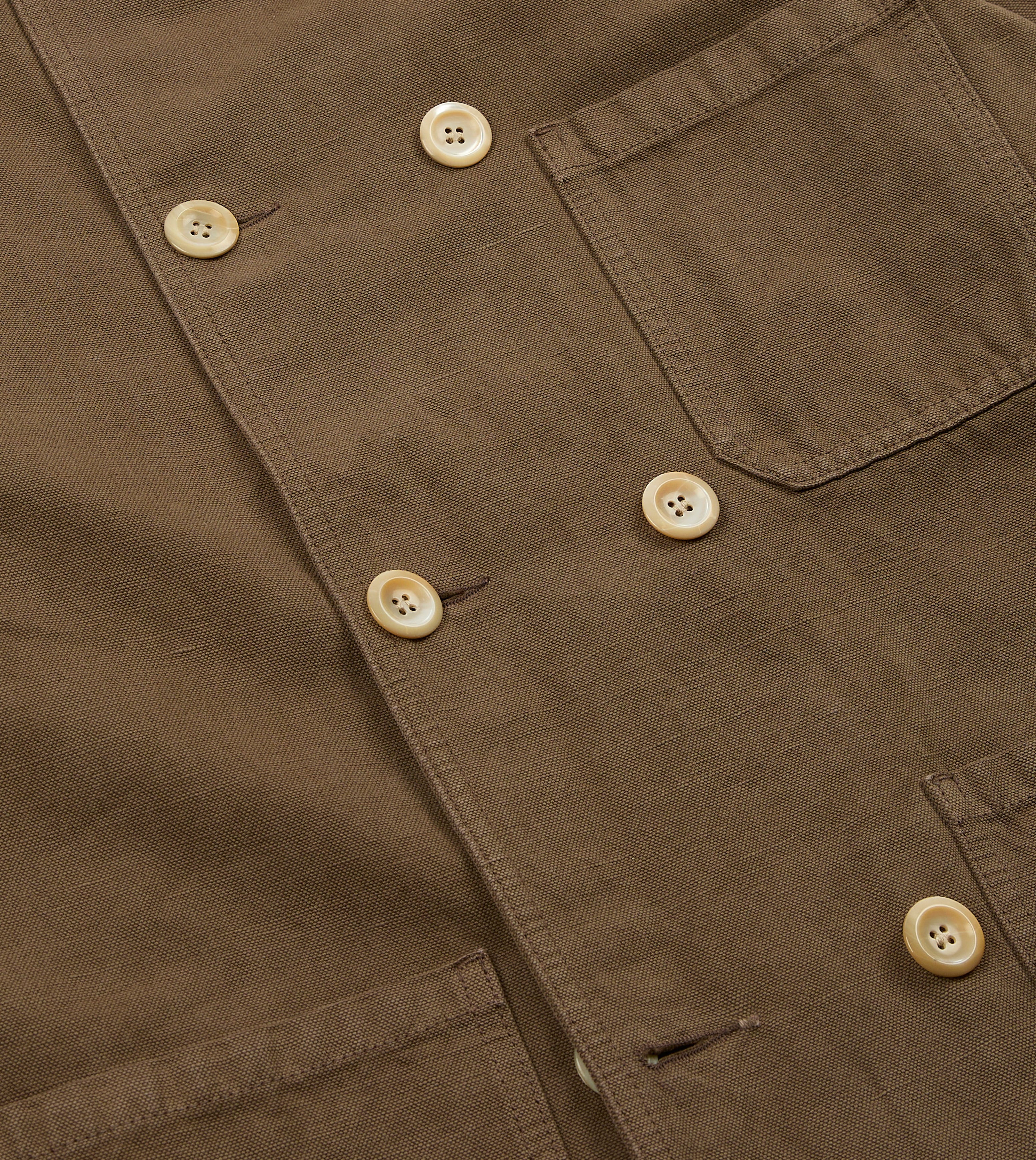 Brown Cotton-Linen Double-Breasted Chore Coat