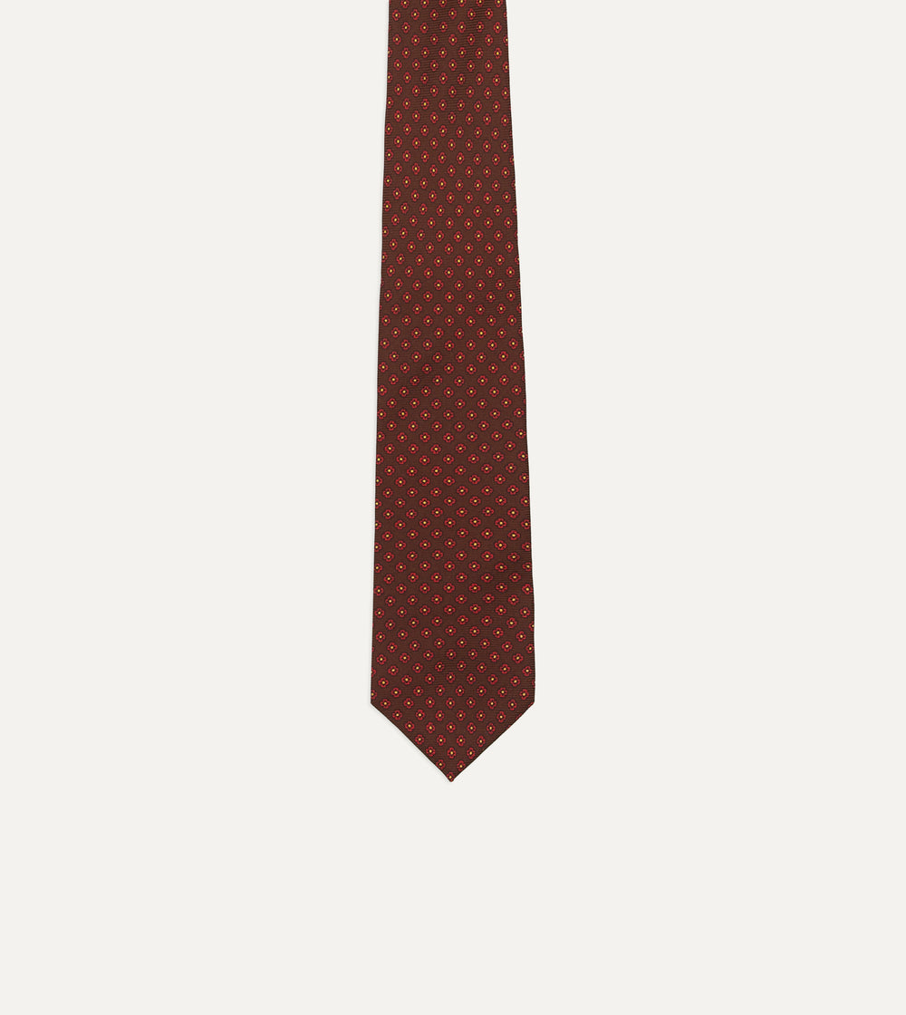 Brown Micro Geometric Print Silk Twill Self Tipped Tie