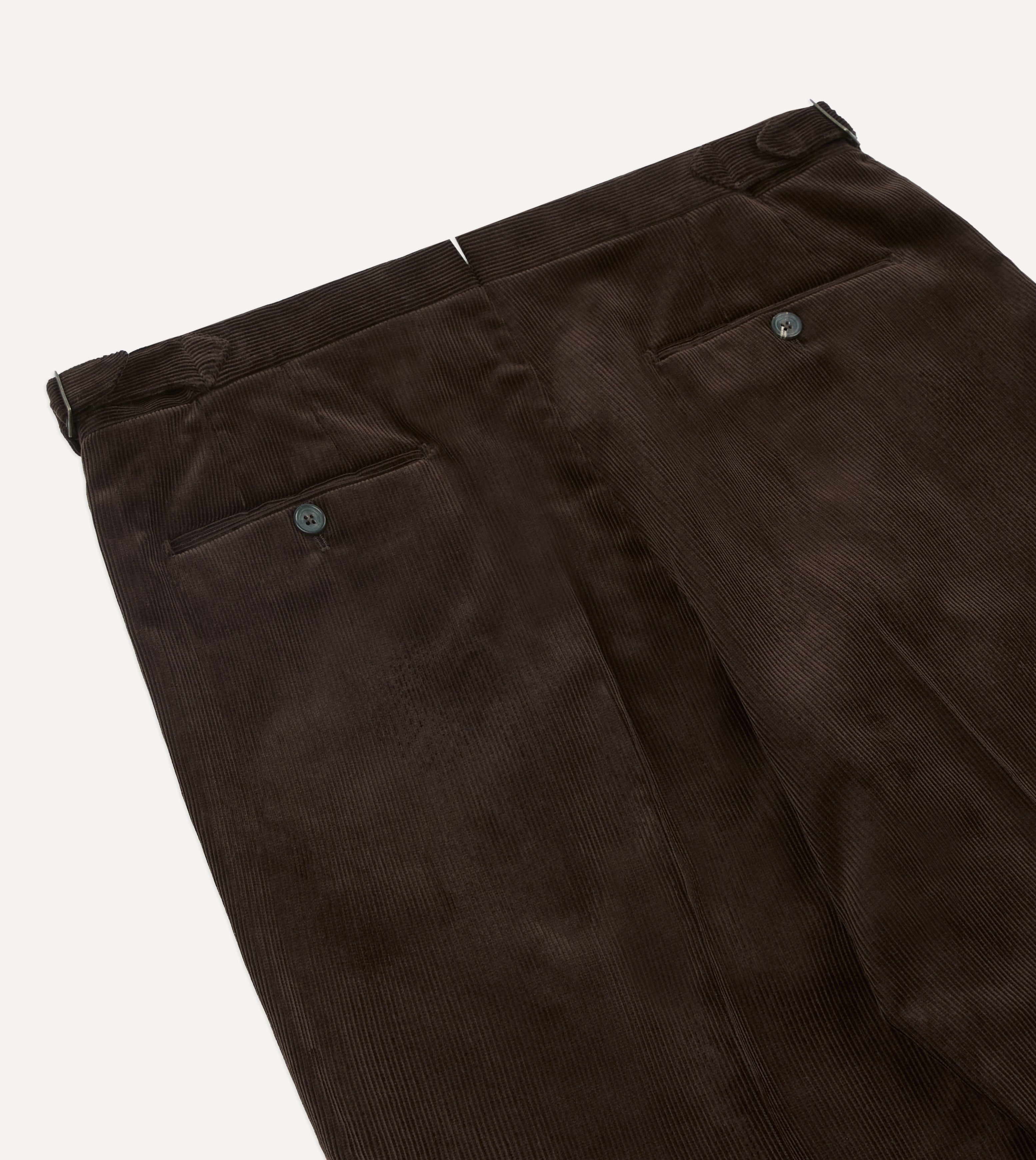 Brown Mid-Wale Corduroy Single Pleat Trouser