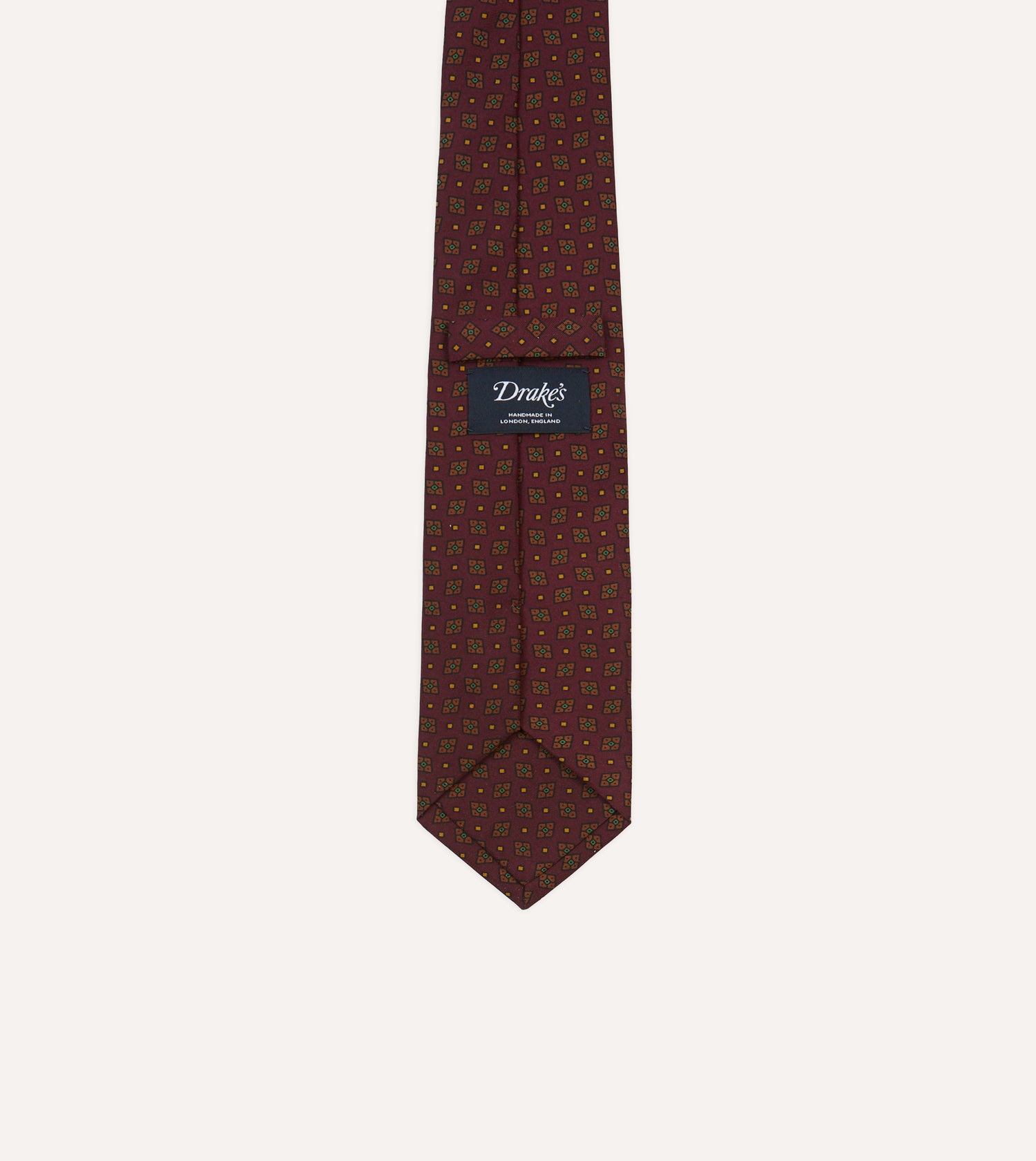 Burgundy Medallion Print Silk Twill Self Tipped Tie