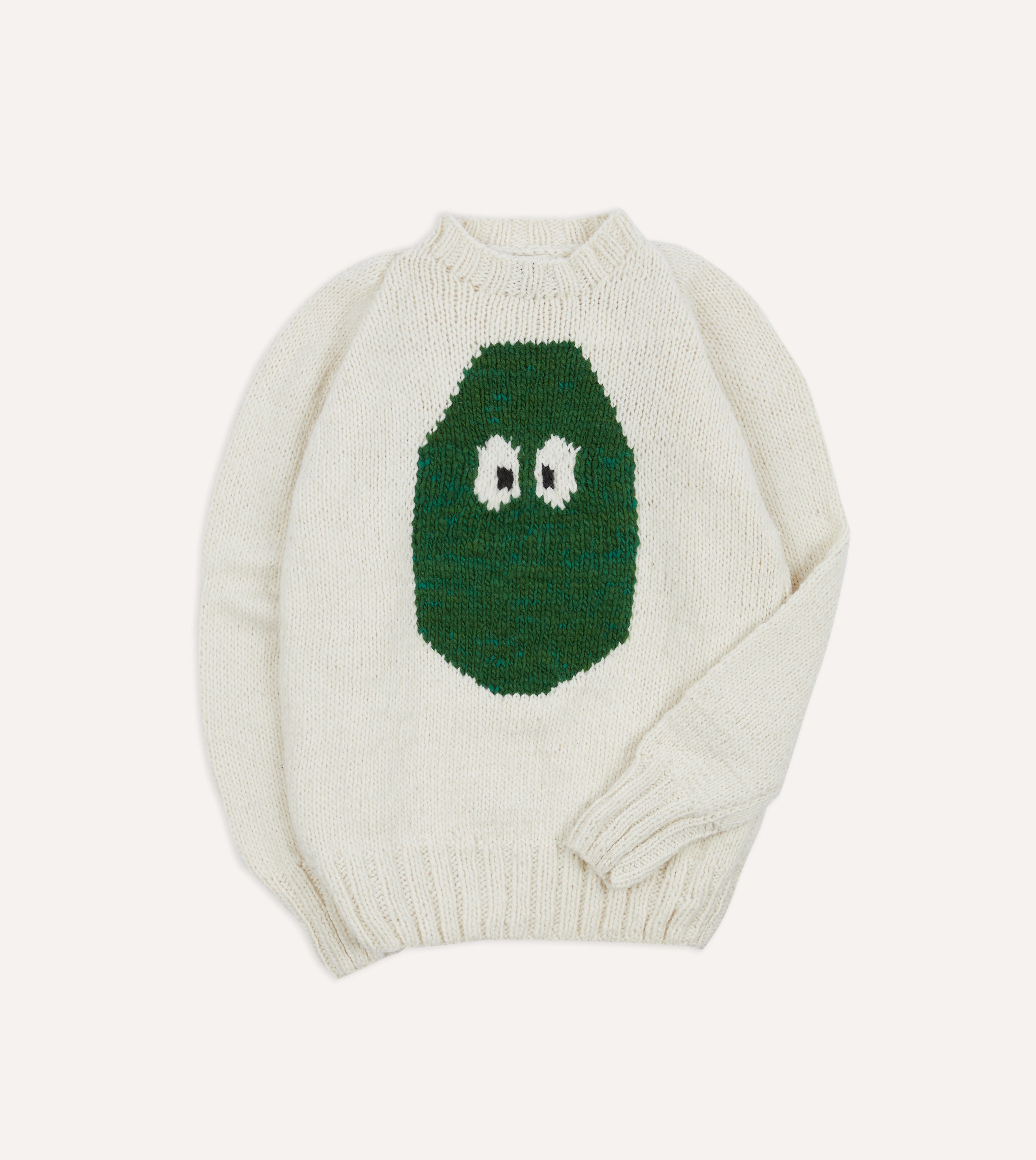 Chamula for Drake's Ecru Avocado Merino Jumper