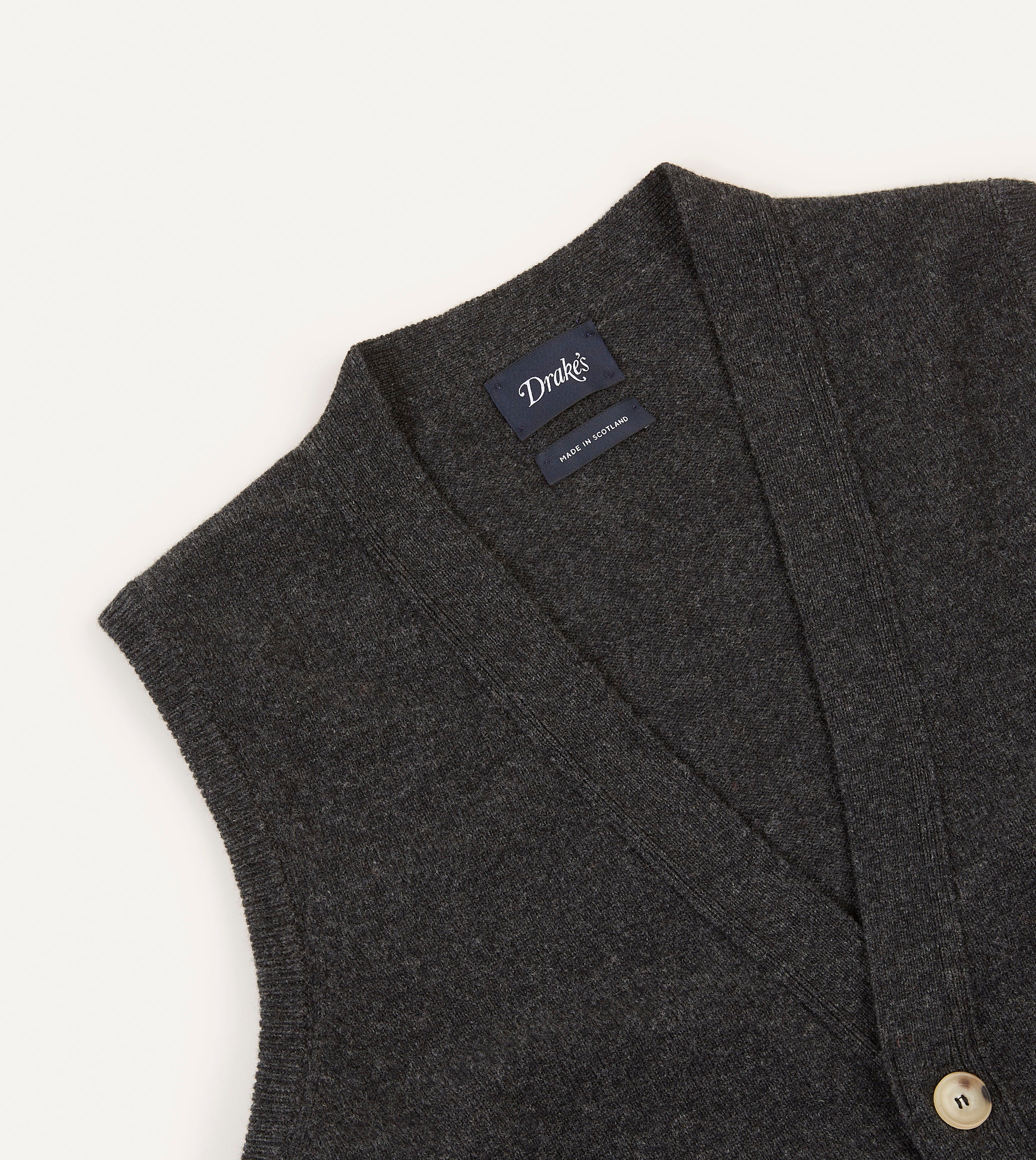With a close, sartorially-inflected cut and a longer length than our shawl collar cardigans, our sleeveless cardigans fit true to size, for a more casual fit, size up.