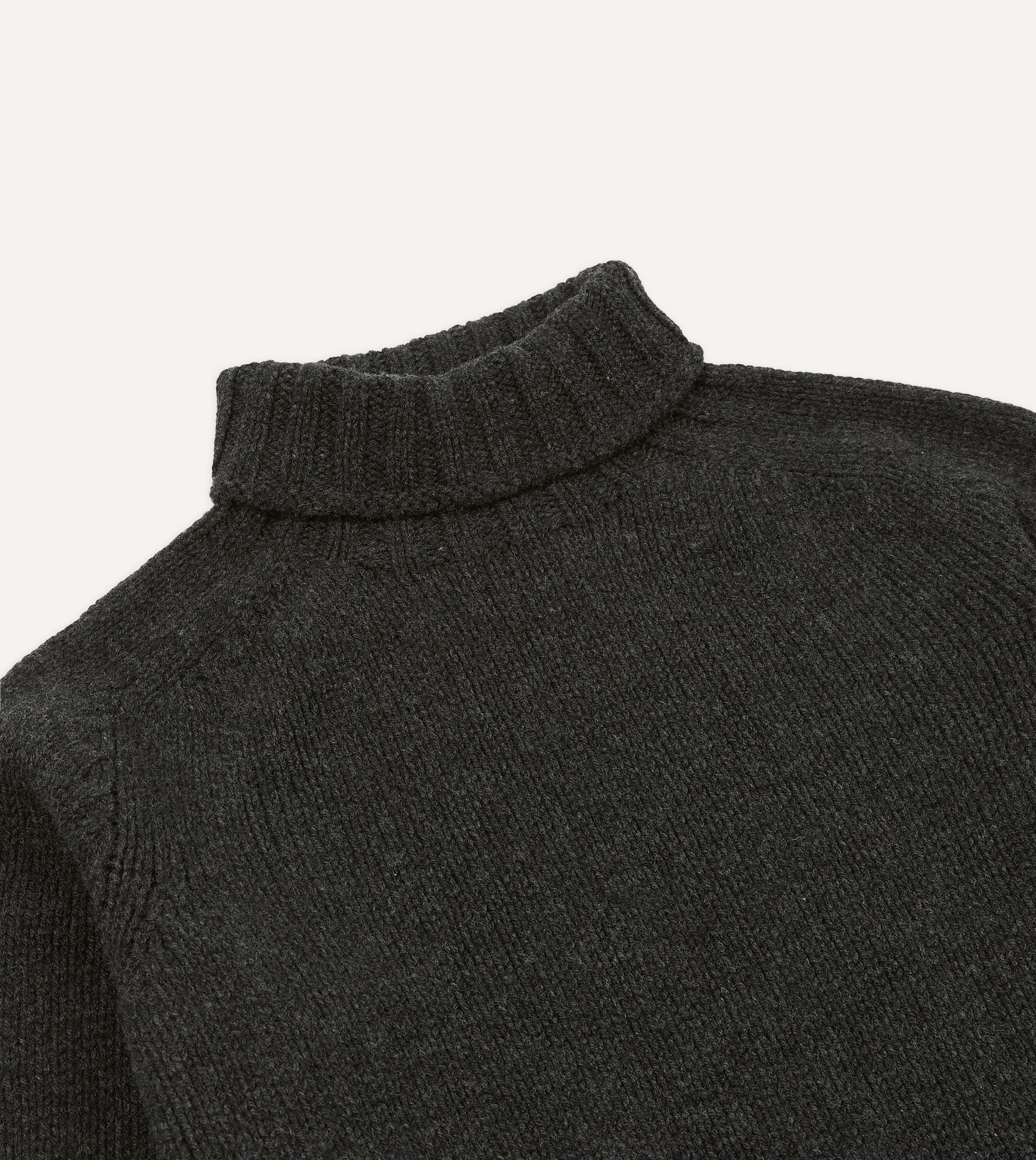 Charcoal Lambswool Submariner Roll Neck Jumper