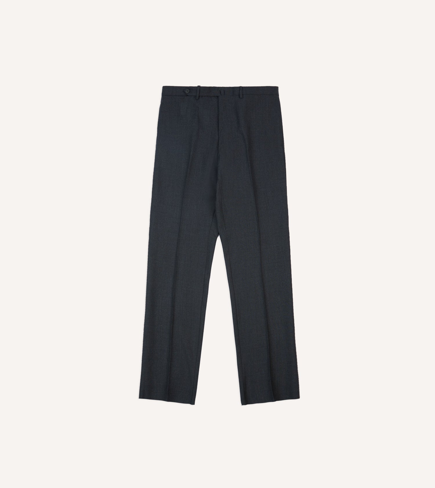 Crafted from a high-twist tropical merino wool, the half-lined trousers feature understated details such as an extended tab front, French bearer buttoning with interior waistband curtaining, an after-dinner split to the rear, and a prong keeper for securing a belt buckle.