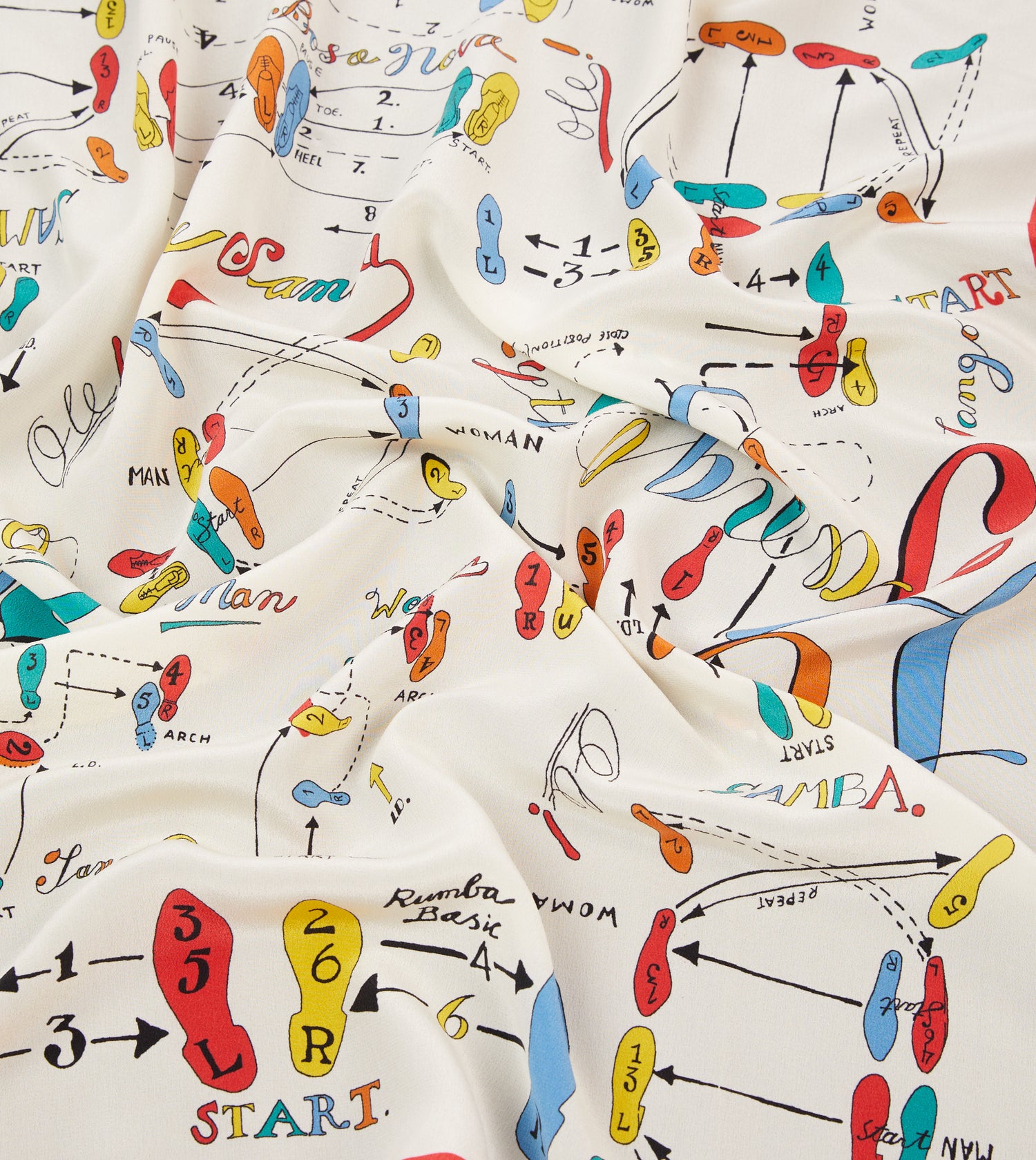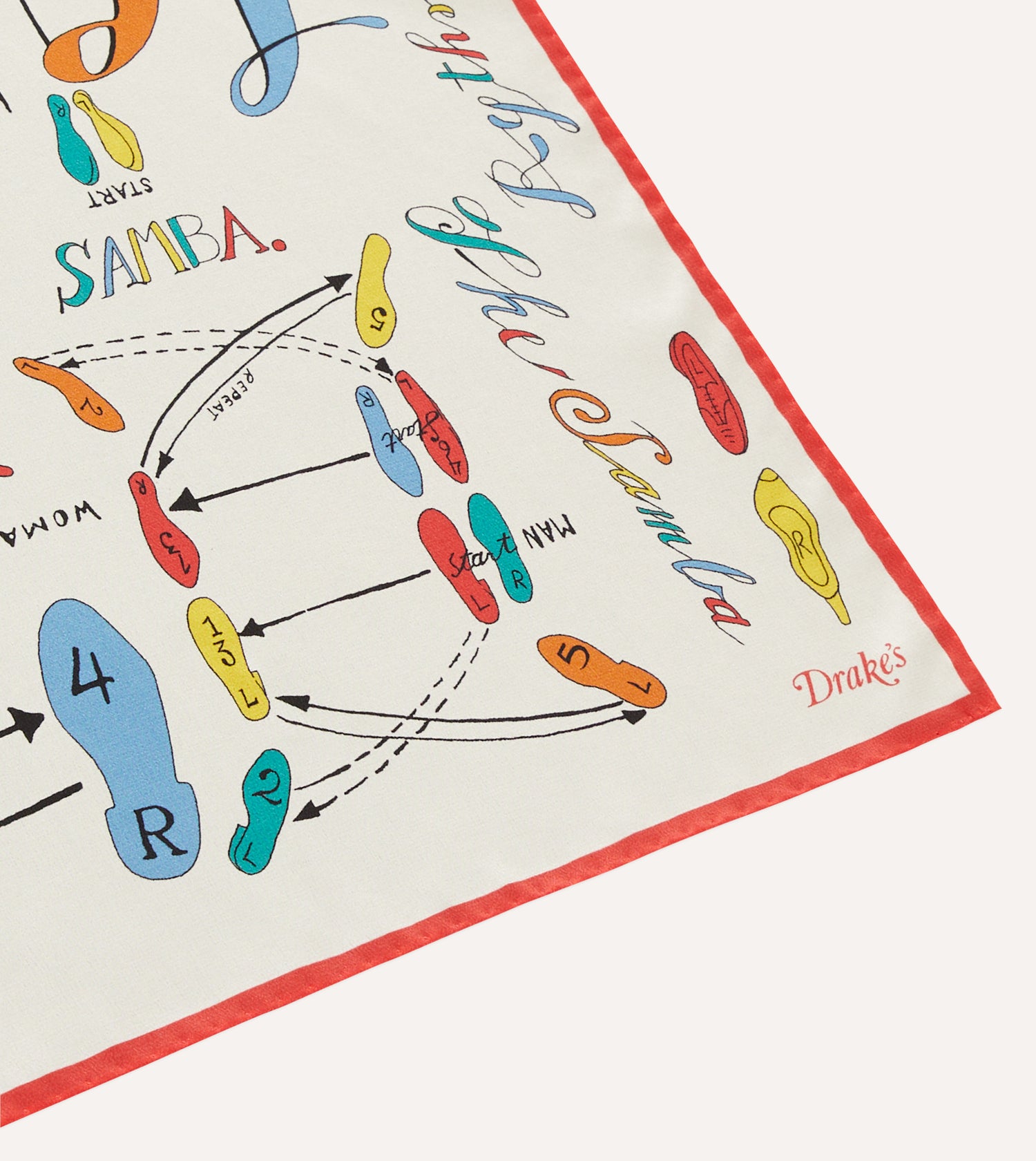 Taken from our extensive design archive, this dance steps motif has been vividly applied to pure silk for a elegant and comfortable defence from a cold snap.