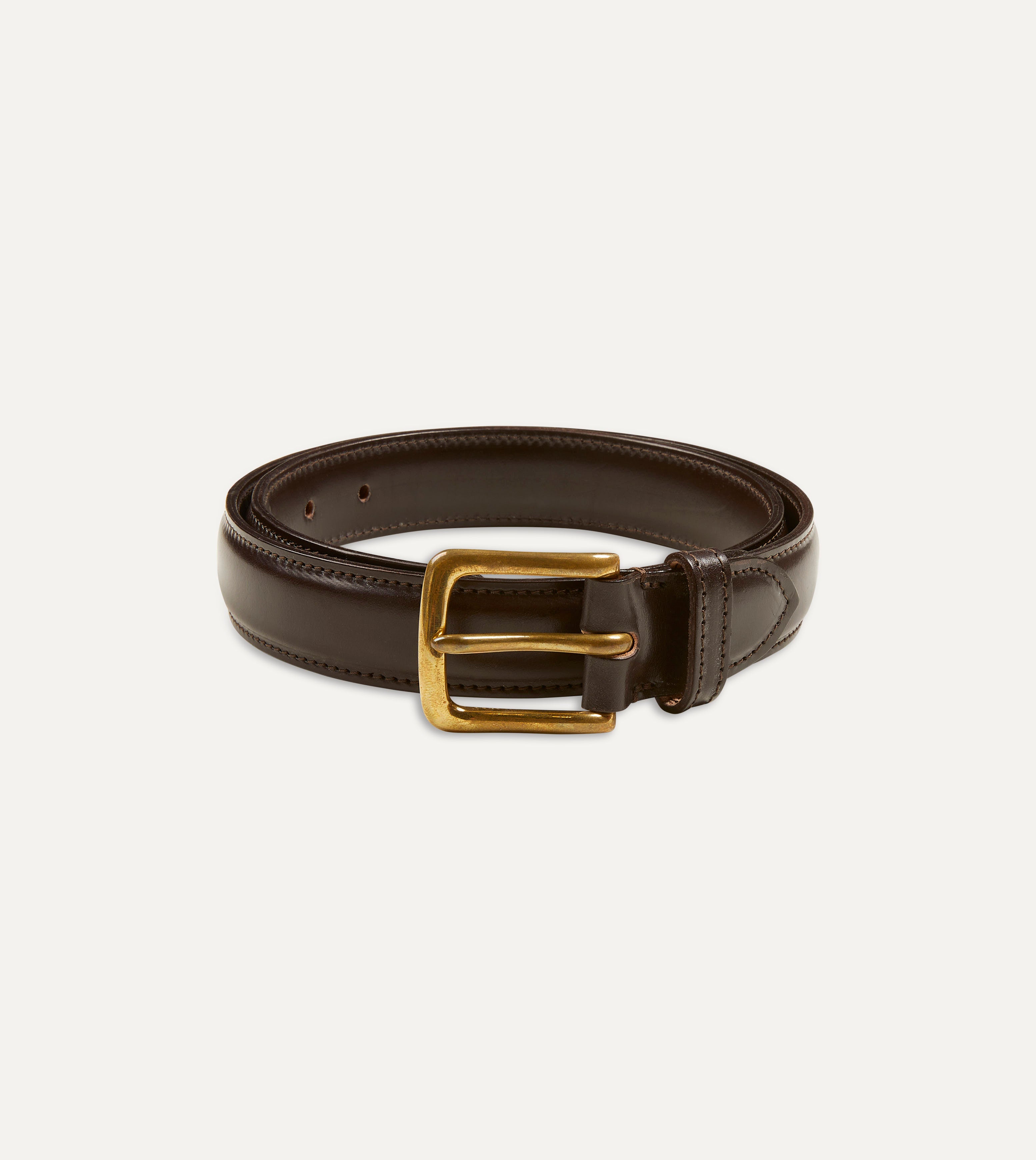 Dark Brown Fully Lined Bridle Leather Belt with Brass Buckle