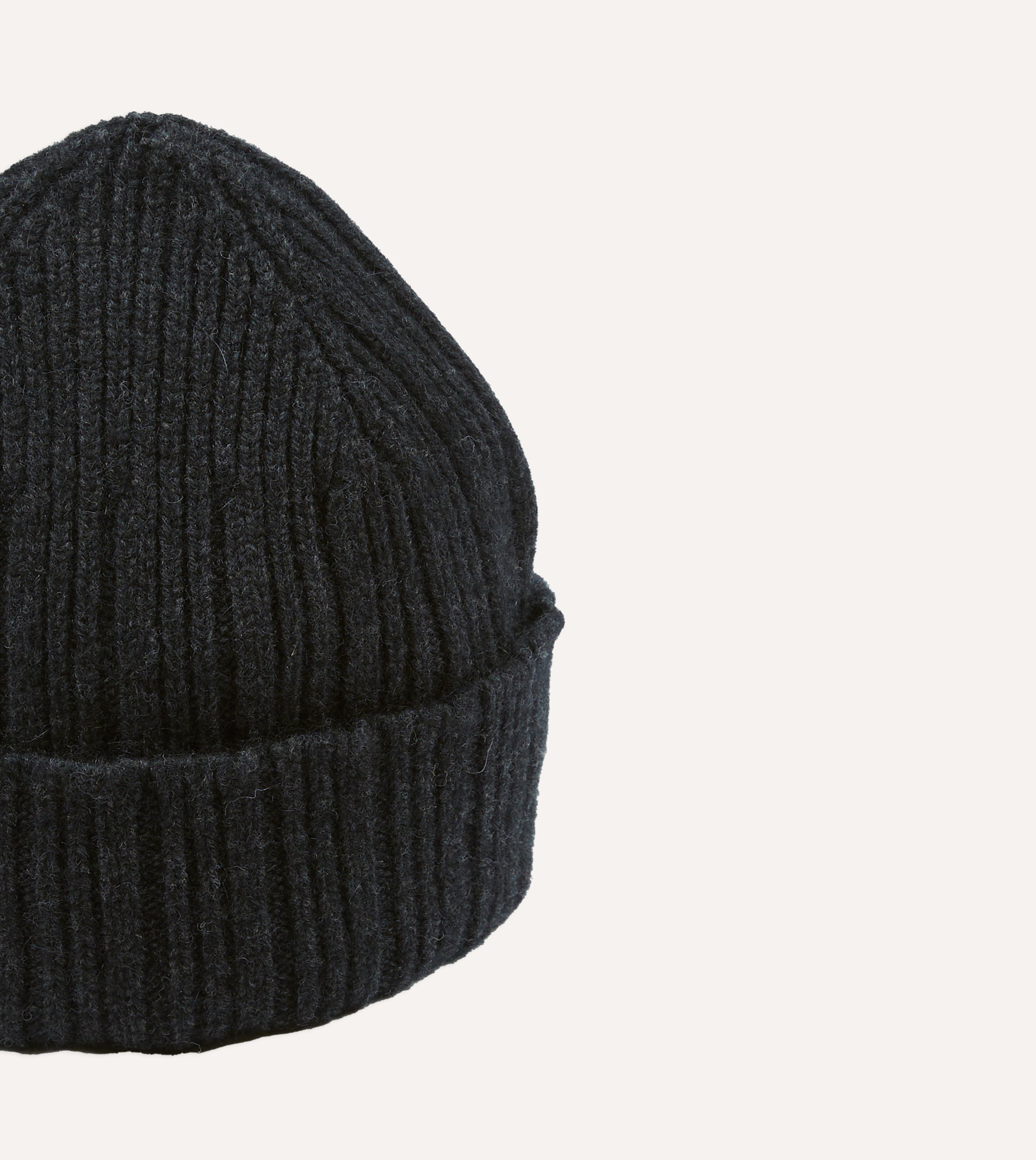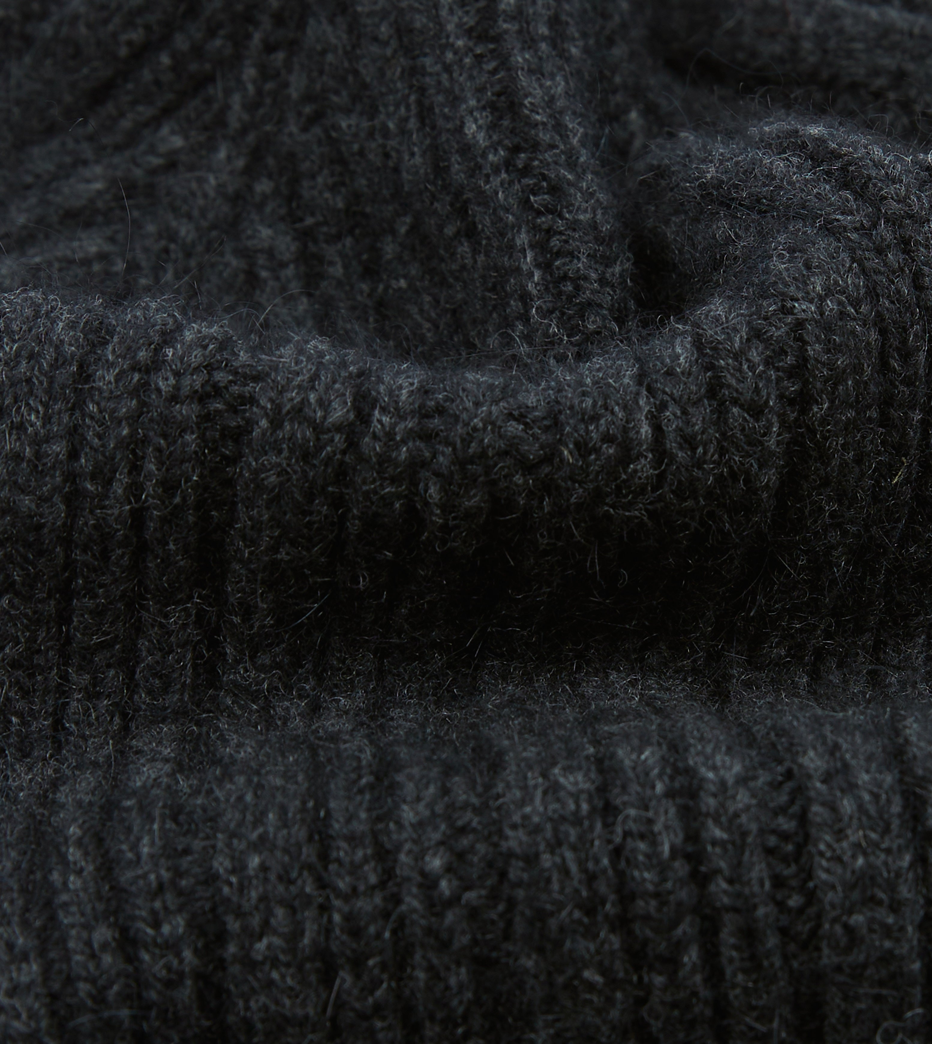 Dark Grey Angora Lambswool Ribbed Knit Cap