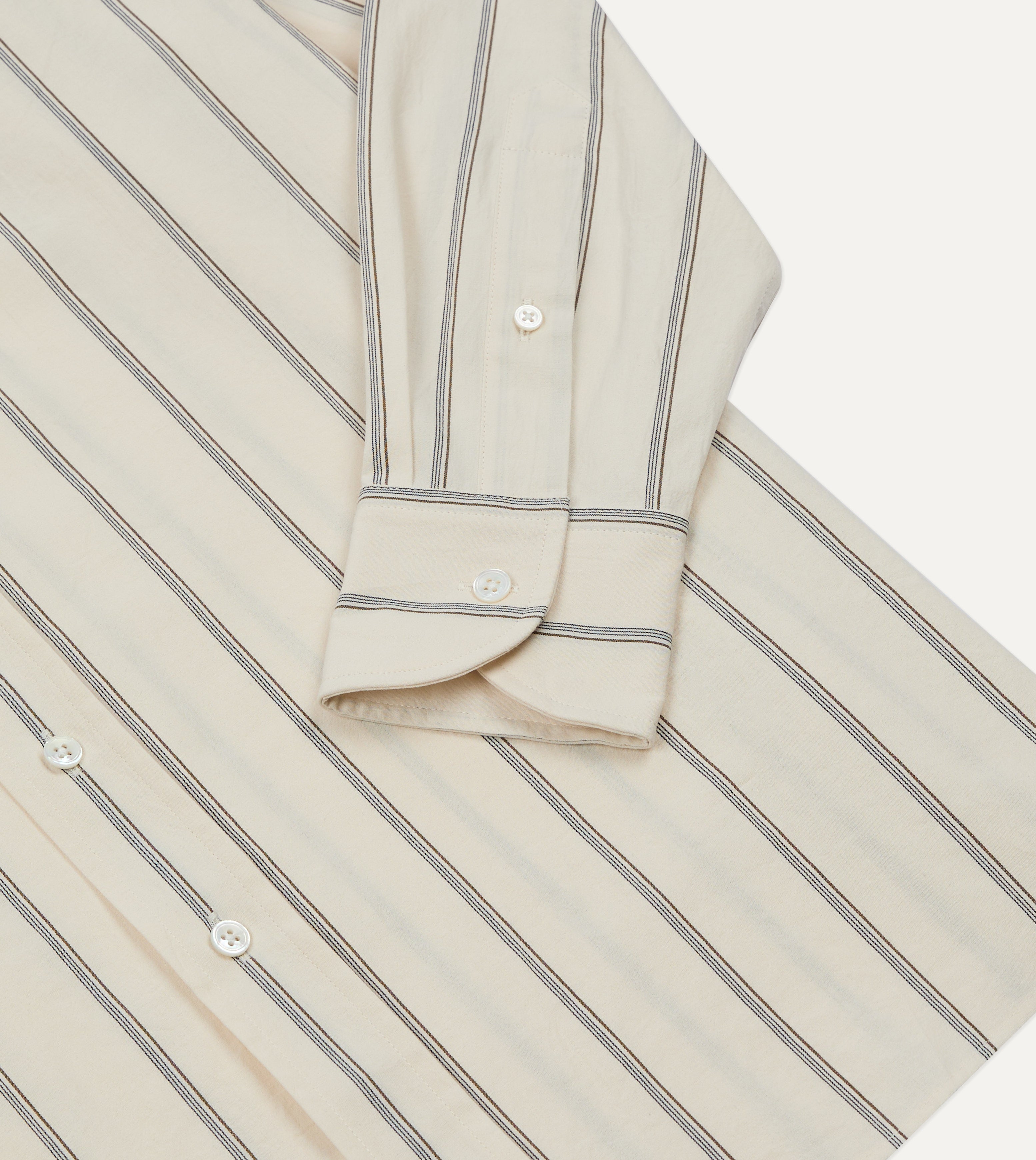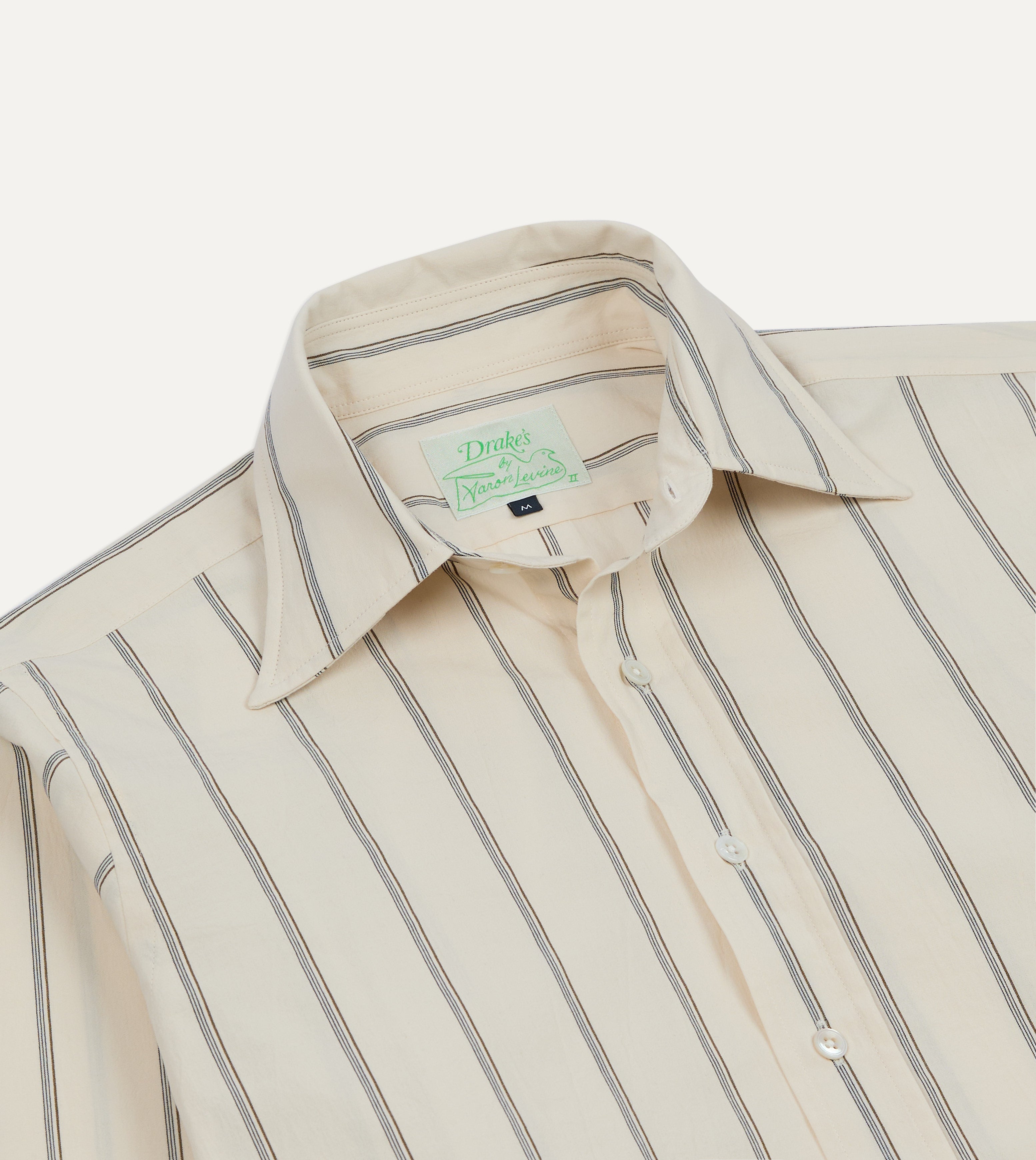 Drake's by A. Levine Ecru Stripe Cotton Long Point Collar Shirt