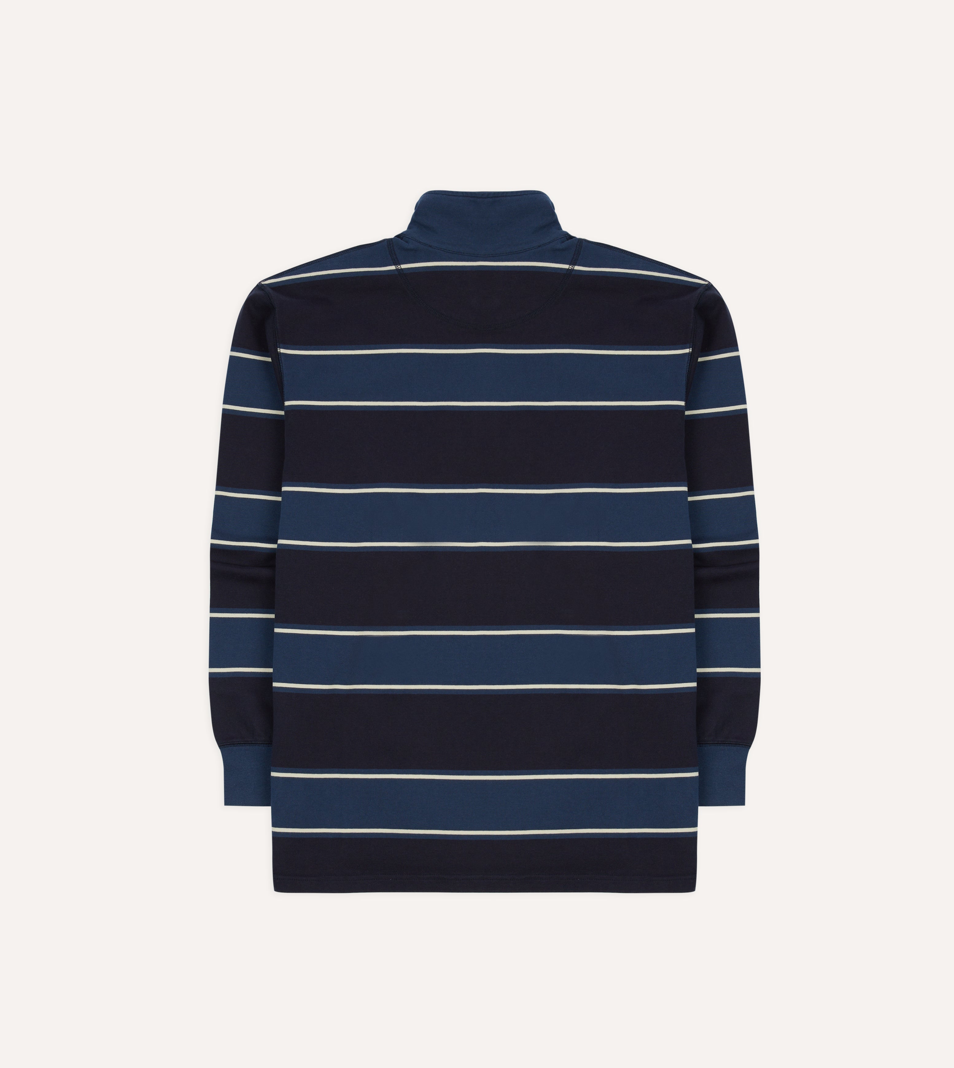 Drake's by A. Levine Navy Stripe Cotton Quarter Zip Rugby Shirt