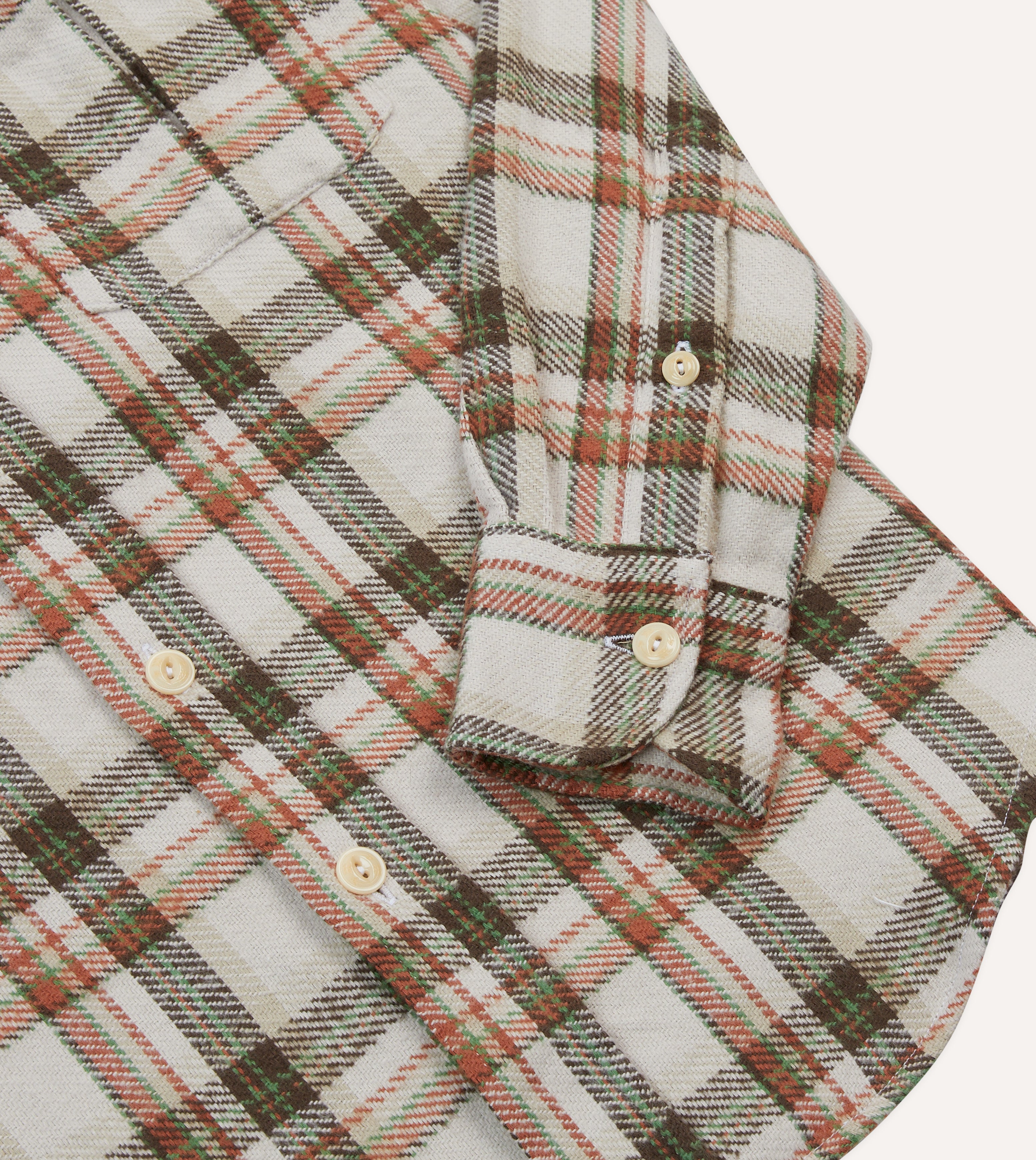 Cut from a Japanese heavy cotton with a slubbed texture, it features a curved hem, single-button cuffs, and two flap pockets, perfect for keeping essentials close without weighing down your trousers. Every detail, from the fisheye corozo buttons to the single-needle construction, reflects Drake’s hallmark attention to quality.