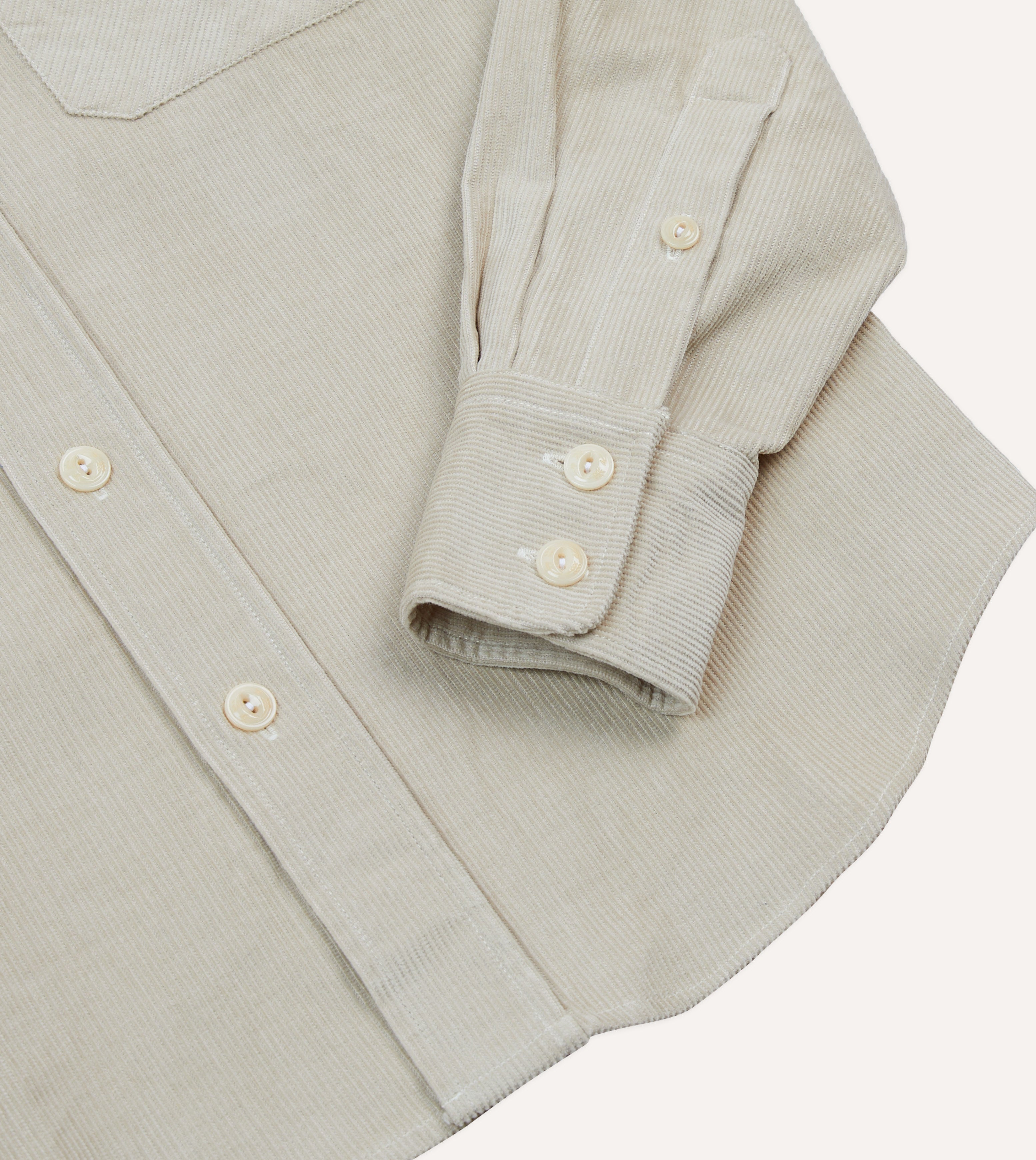 Cut from a Japanese cotton needlecord, it’s a piece designed not only to stand up to years of wear but to improve with them, developing a soft patina that speaks to its longevity. Details such as edge-stitched single-point yokes, twin double-point flap pockets, and double button barrel cuffs stay true to classic Western styling, while Italian craftsmanship ensures a refined finish.