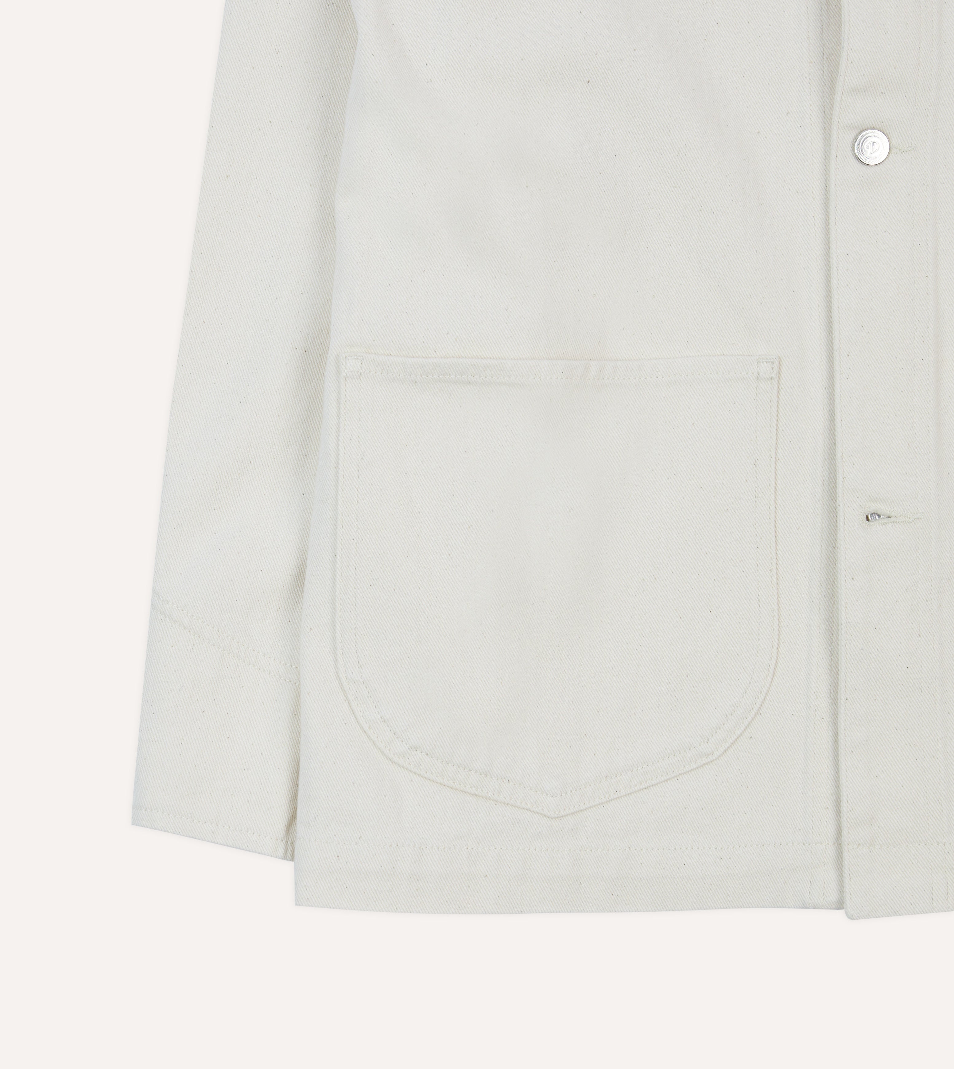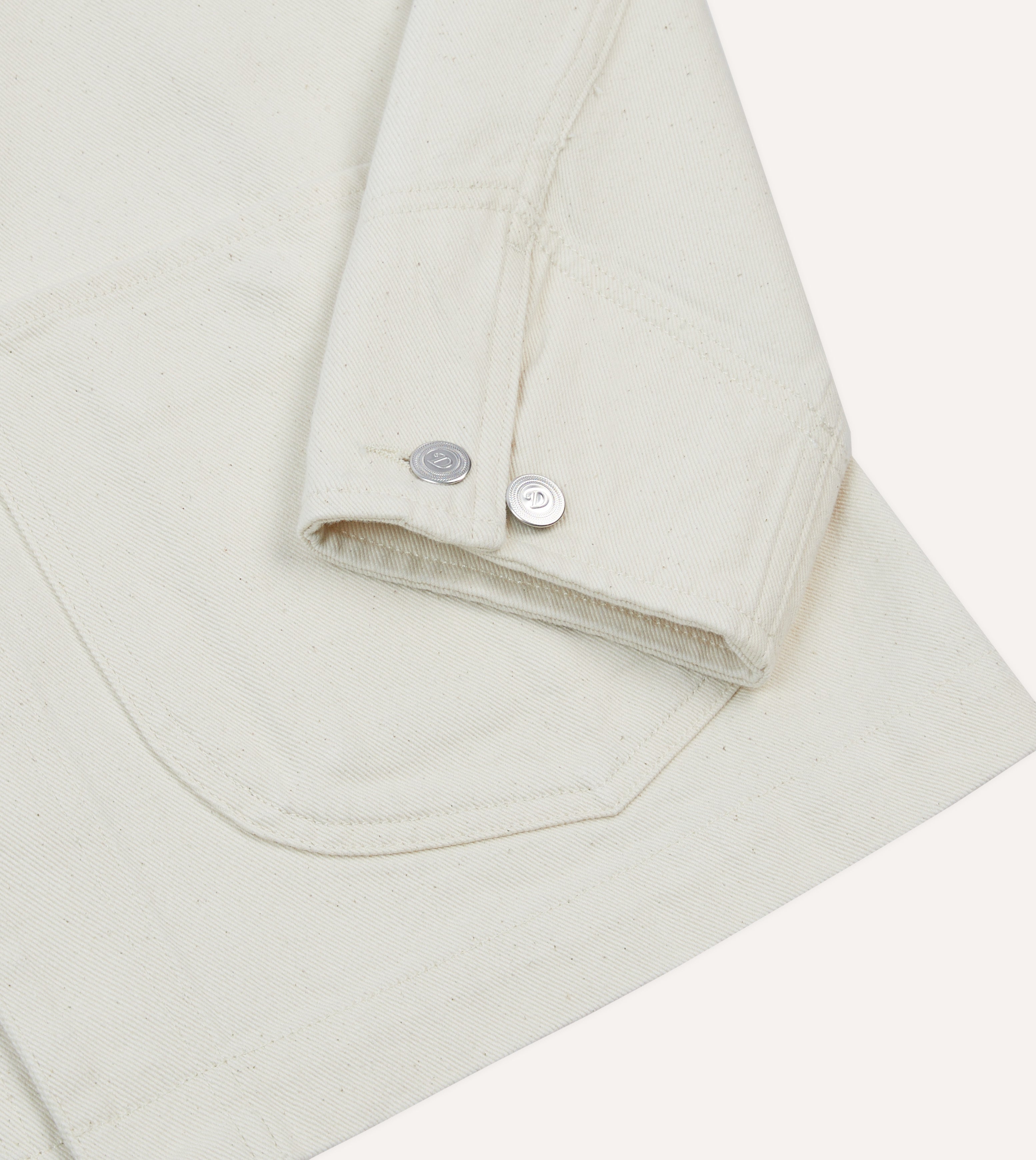 Our chore jackets are cut generously, with a slightly boxy shape recalling the original workwear garments worn around the turn of the century, as opposed to their slimmed-down, contemporary counterparts.