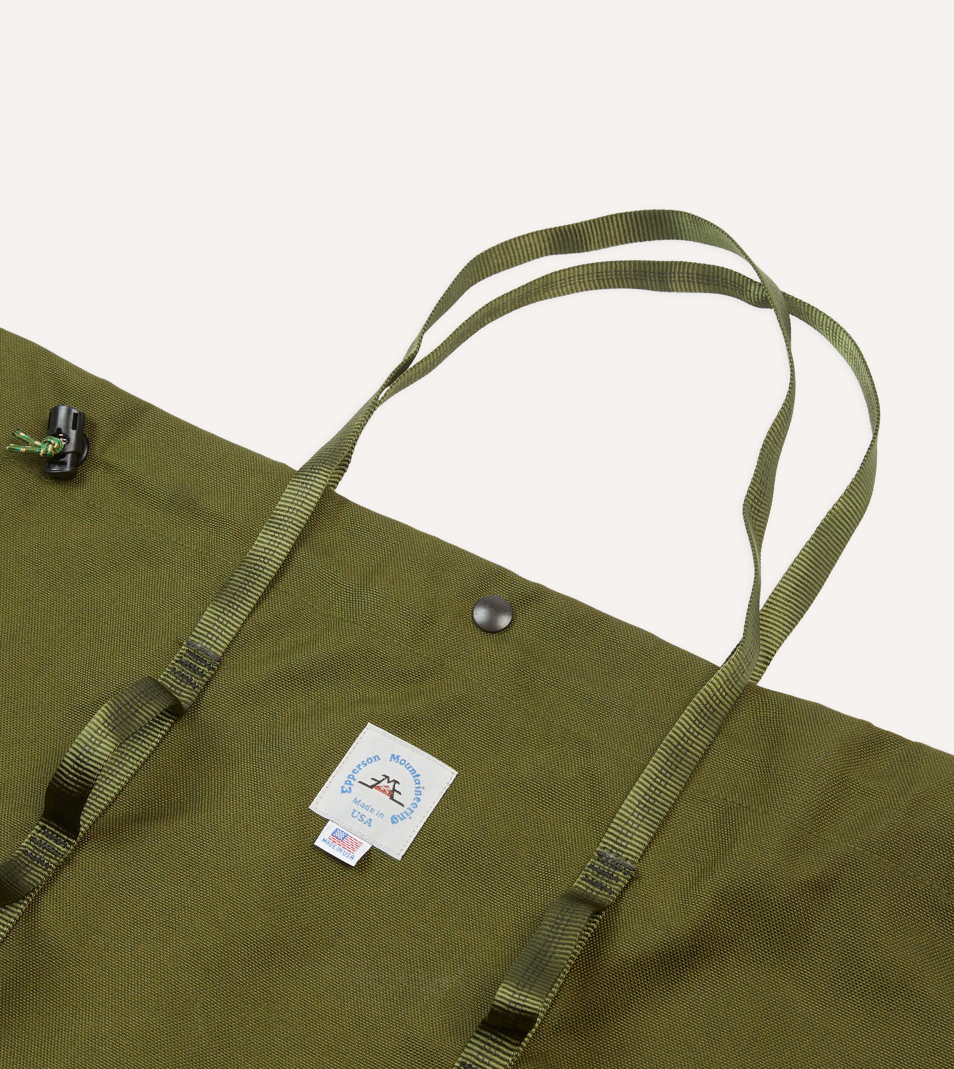 The Climb Tote has a carrying capacity of 21L and is constructed from a water-resistant Cordura nylon and mil-spec tubular webbing for a rugged and utilitarian take on the tote bag.