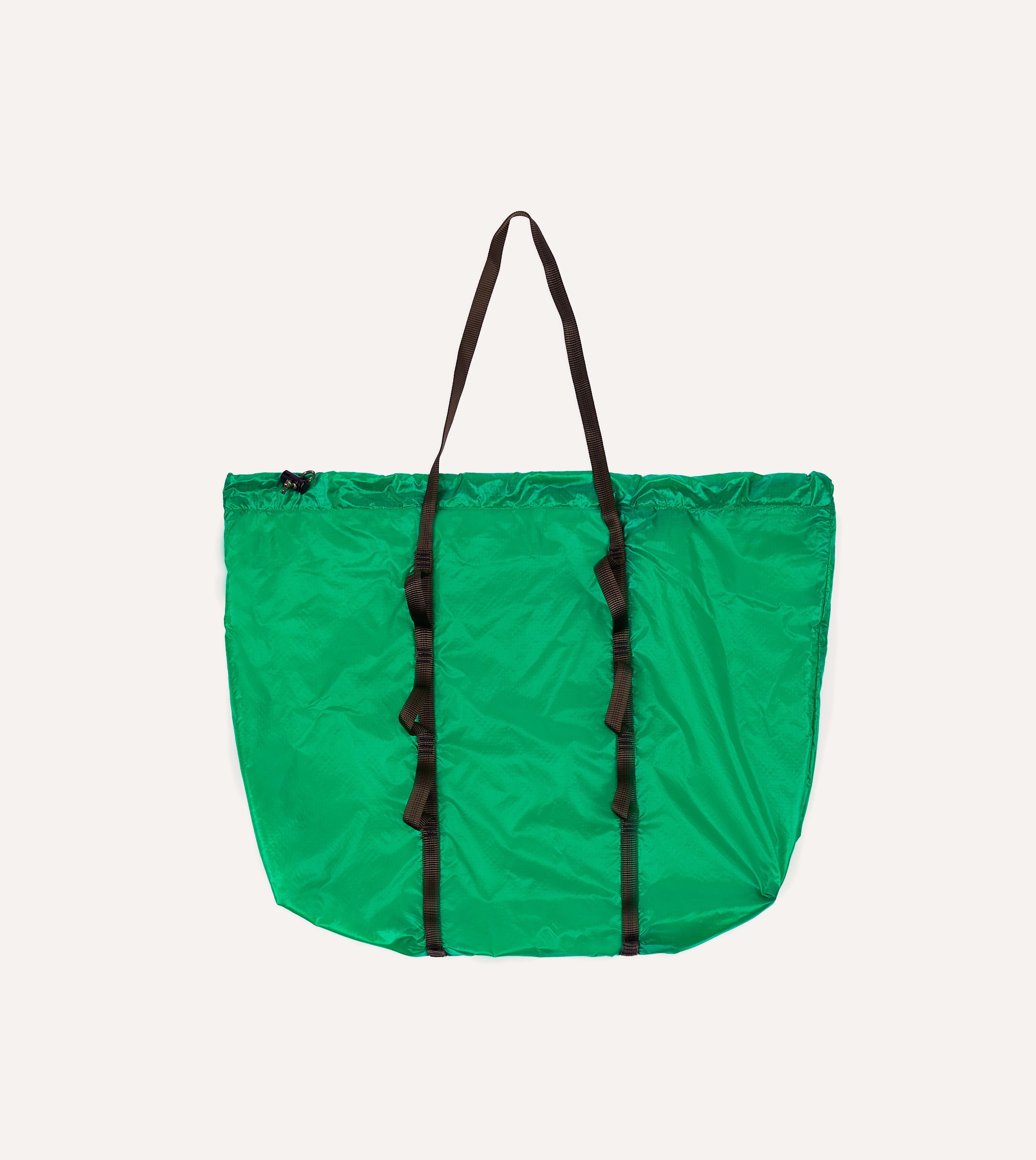 Crafted from durable parachute-grade nylon, it balances resilience with ease, making it an ideal companion for travel, errands, or spontaneous detours. Climbing-inspired details—drawstring closure and daisy chain webbing reinforced with bar tacks—lend utility and a distinctive visual identity.