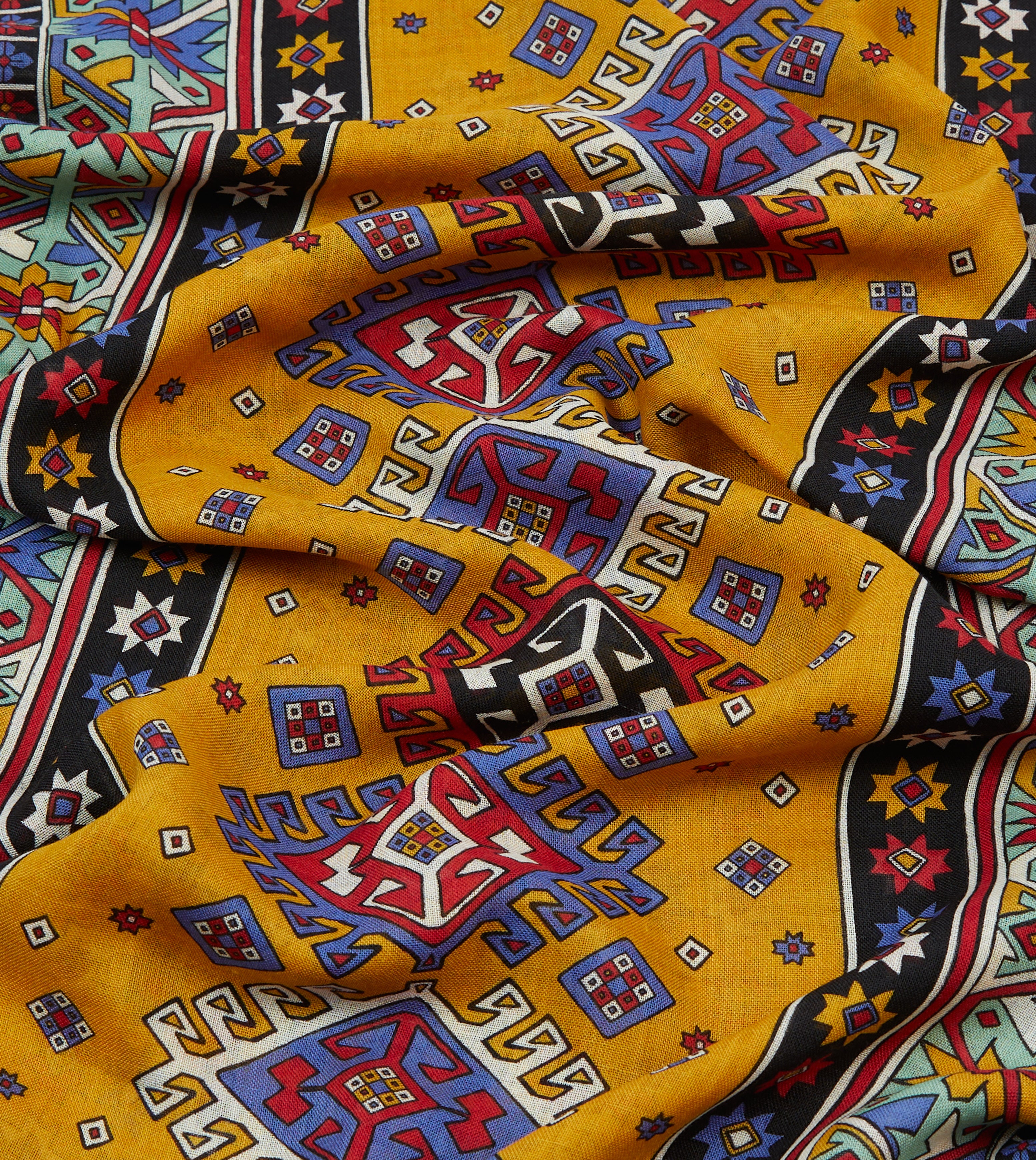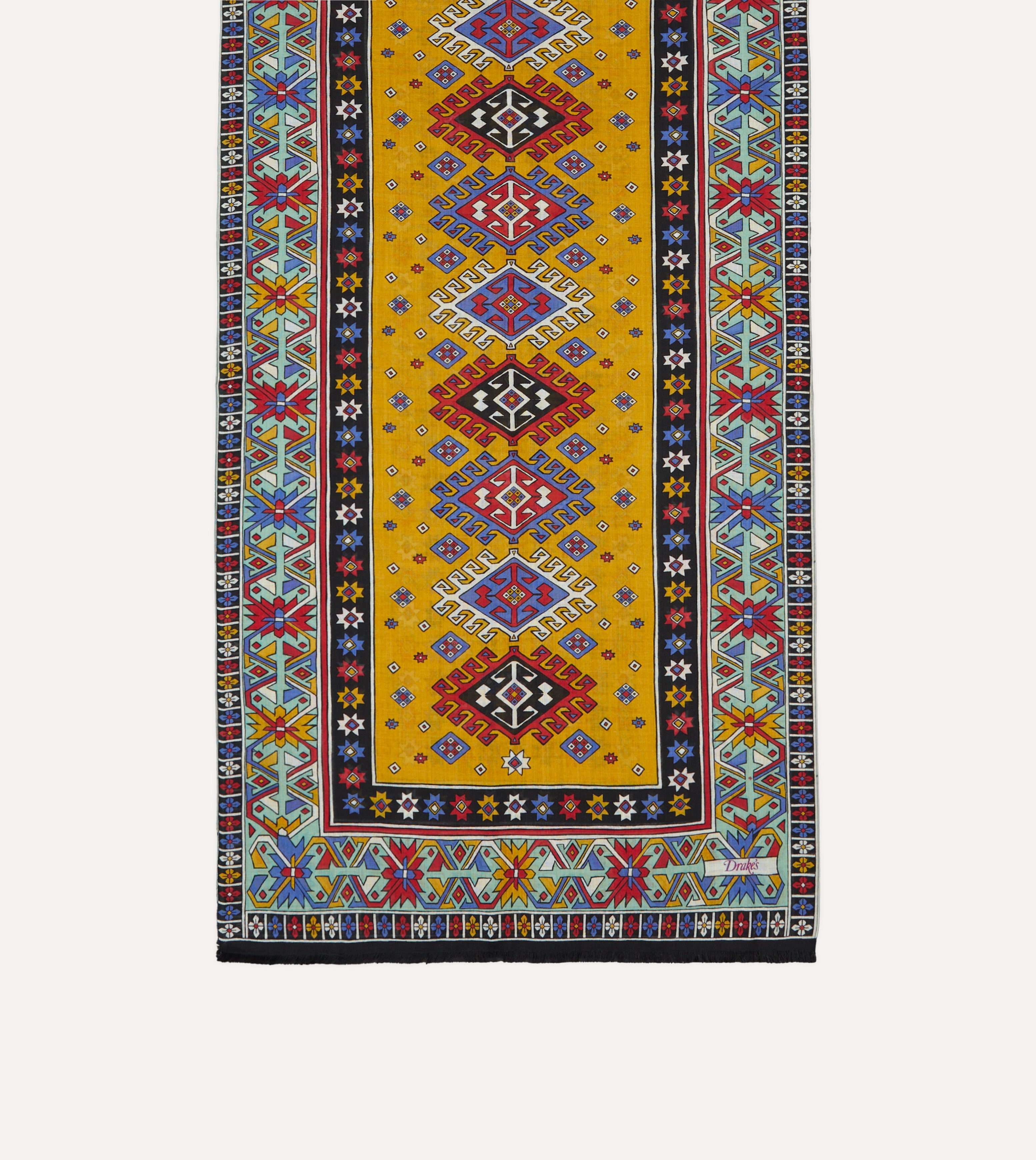 Taken from our extensive design archive, this kilim motif has been vividly applied to a blend of pure wool and silk for an elegant and airy addition to your arsenal.