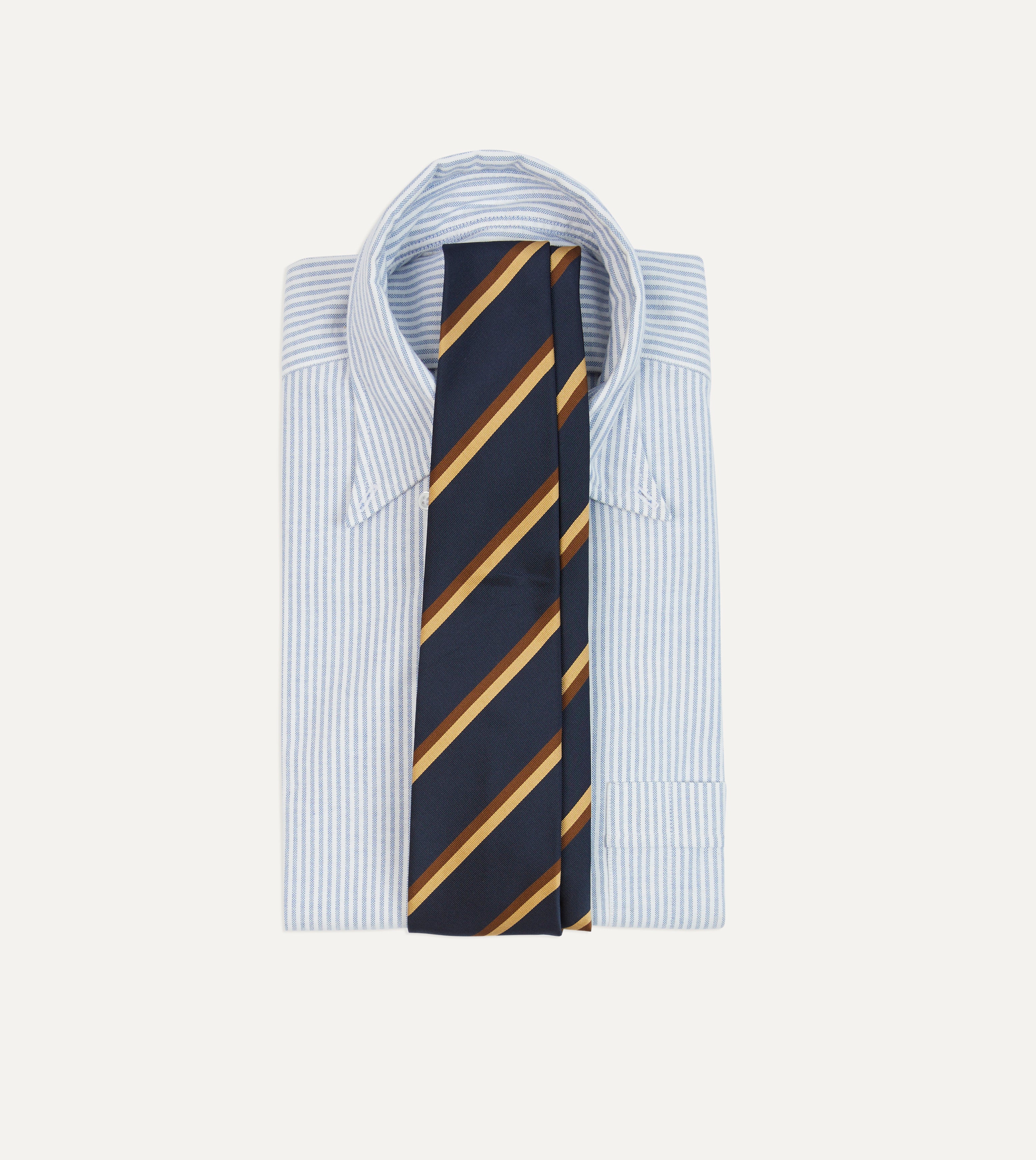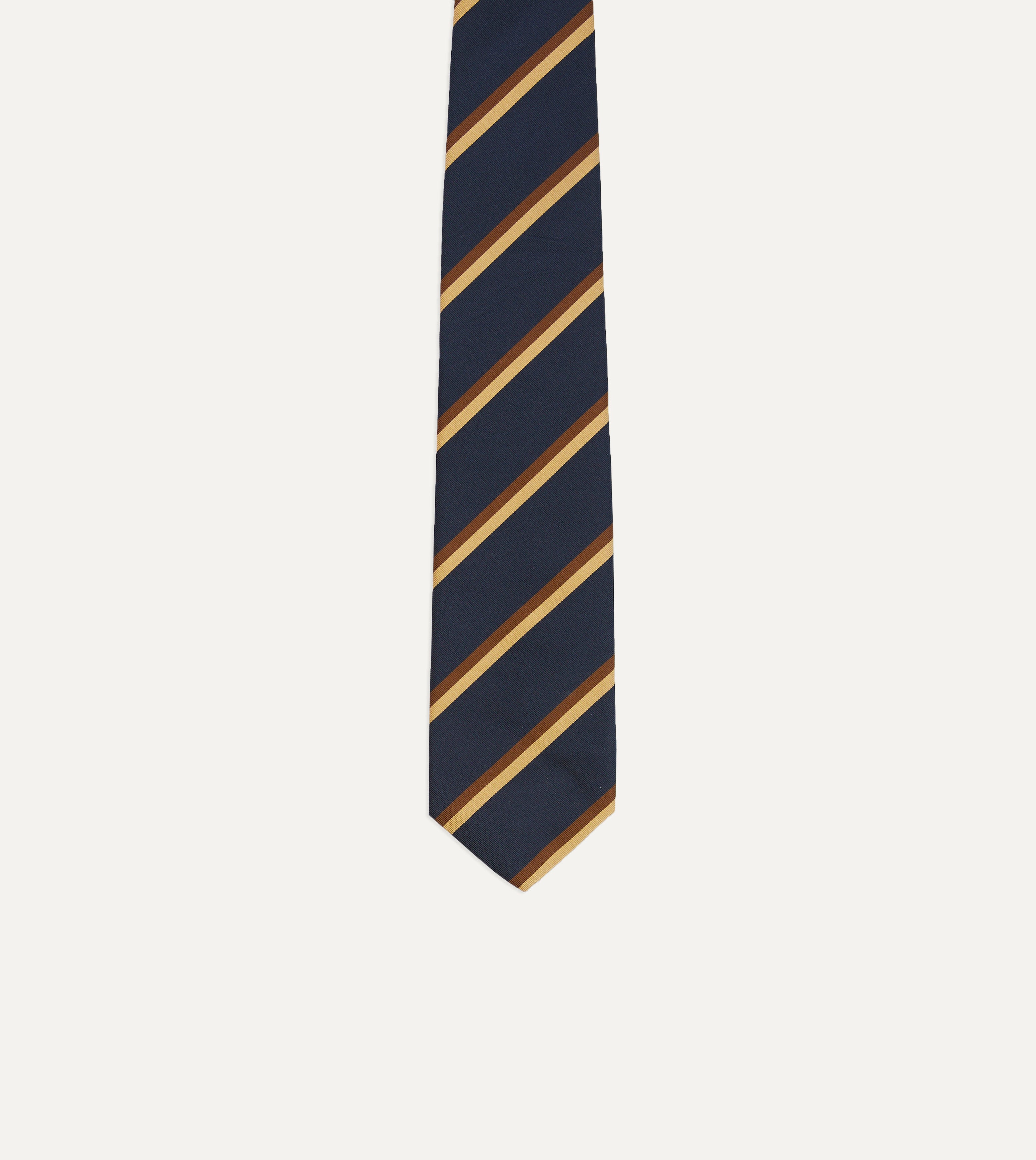 Gold, Navy and Brown Double Stripe Mogador Silk Tipped Tie