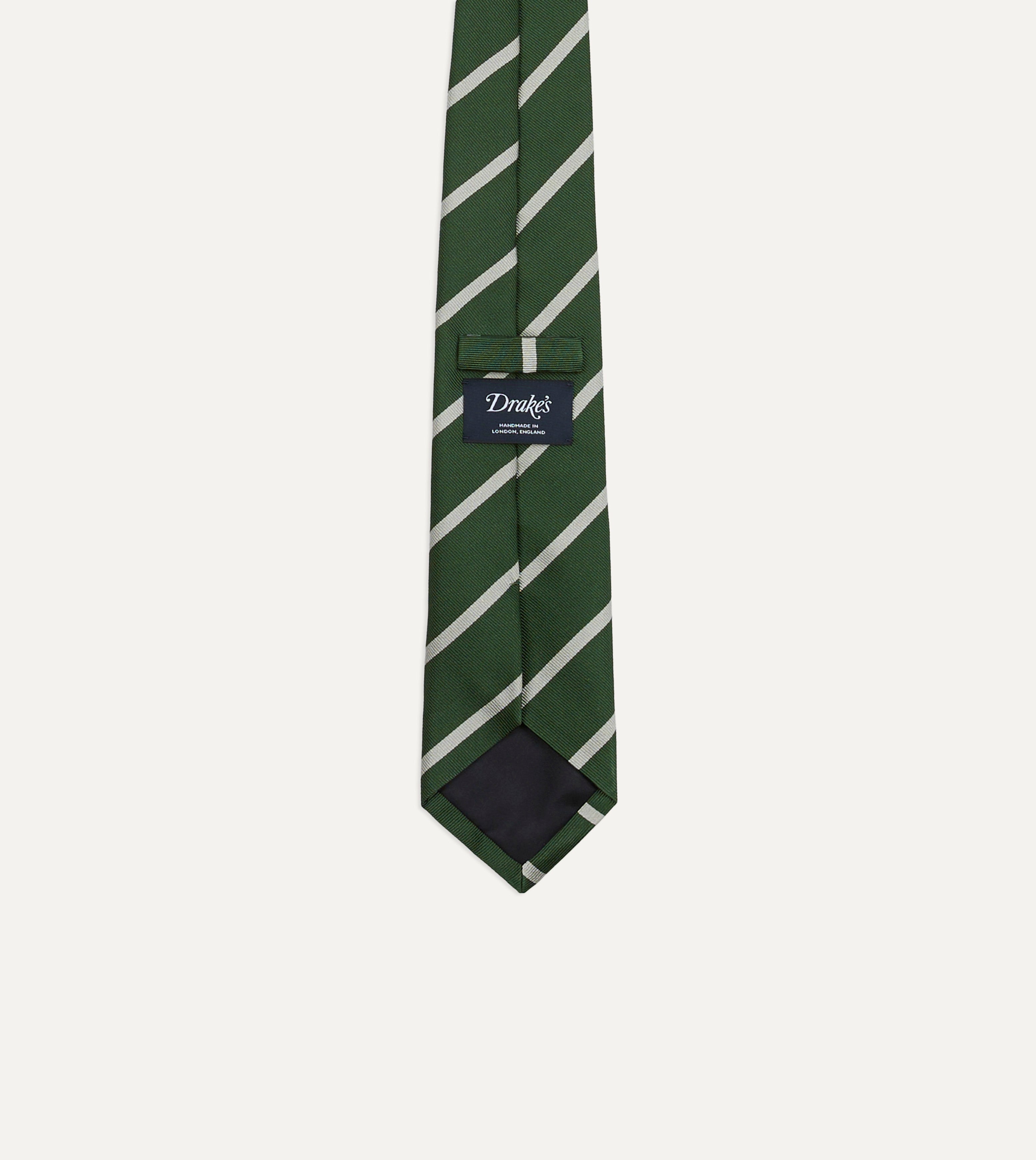 Green and Ecru Stripe Repp Silk Tipped Tie